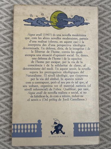 Aigua avall de Josep Maria Folch i Torres és una novel·la adreçada al públic infantil i juvenil que narra una aventura de to didàctic i moral, centrada en el creixement personal del protagonista a través de les dificultats i les experiències viscudes. L’obra combina acció, valors educatius i un llenguatge planer, característic de la narrativa pedagògica de l’autor.