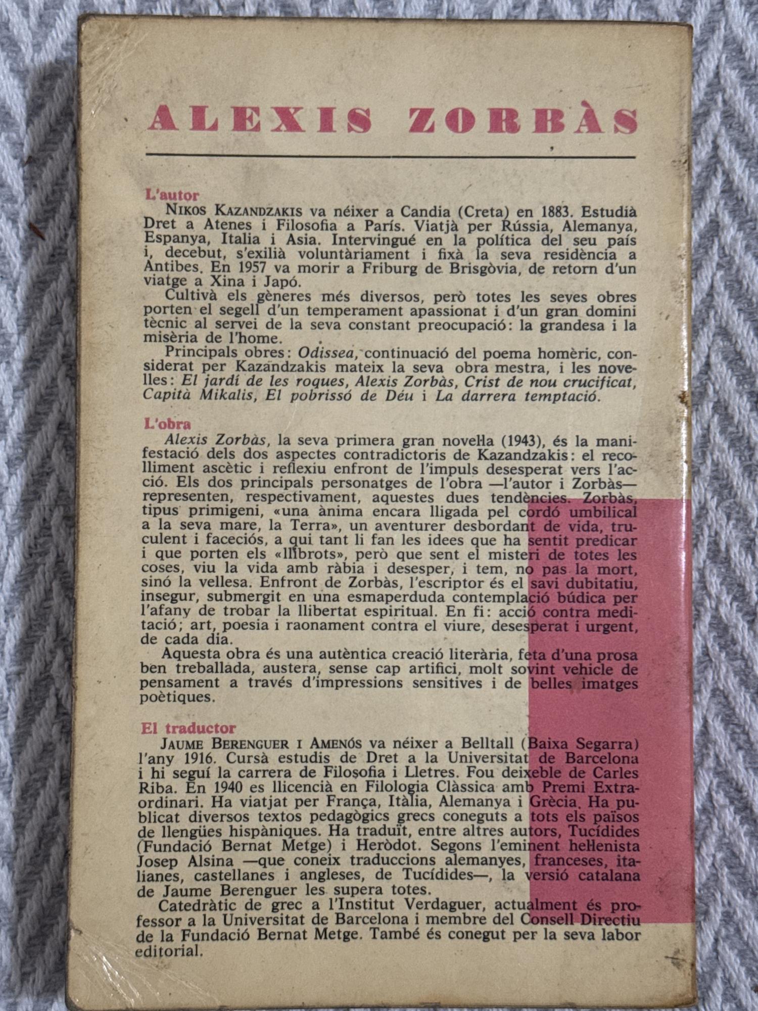 La novel·la relata la relació entre un intel·lectual turmentat per les seves pròpies idees i Alexis Zorbàs, un home vitalista que viu amb passió cada moment. A través de la seva convivència, s’hi confronten la raó i l’instint, la por i la llibertat, la teoria i l’acció. És un cant a l’autenticitat i a la celebració de la vida fins i tot enmig de l’adversitat.