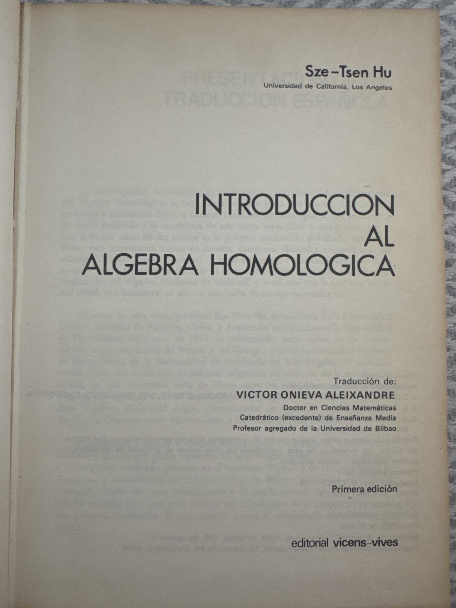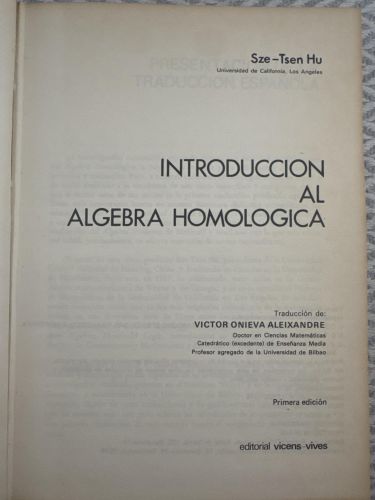 El libro introduce los conceptos fundamentales del álgebra homológica, como complejos, homología y cohomología. Desarrolla herramientas abstractas utilizadas en topología algebraica y otras áreas de las matemáticas modernas. Es una obra técnica orientada a estudiantes avanzados.