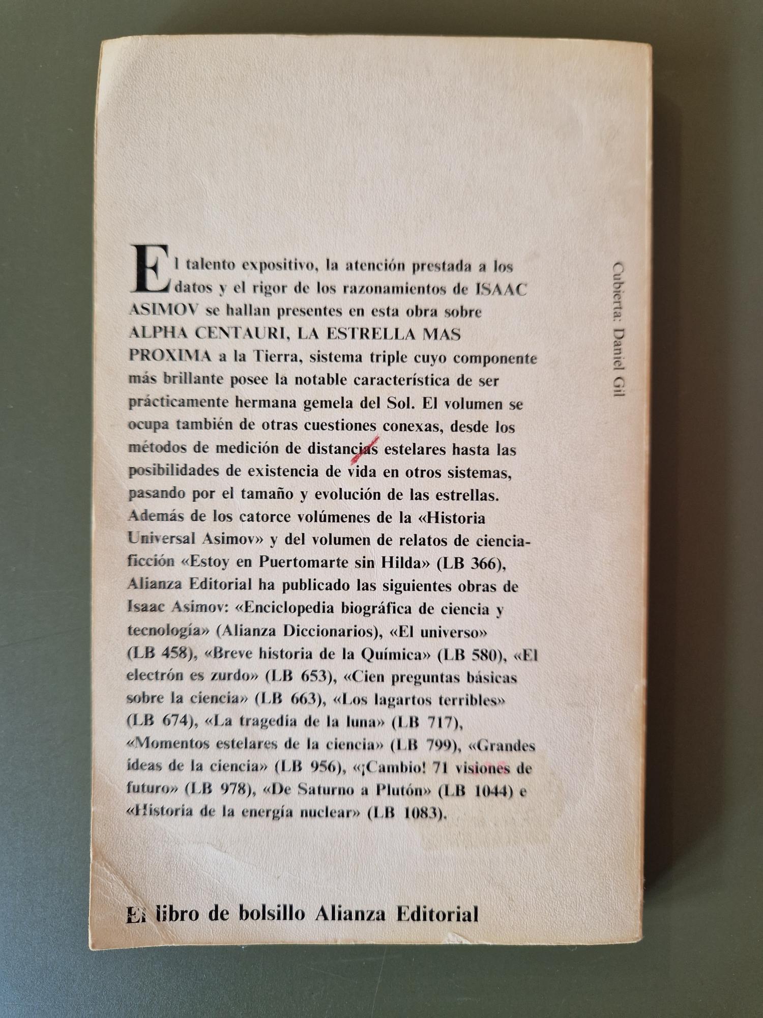 Este libro de divulgación científica acerca al lector a la estrella Alpha Centauri, el sistema estelar más cercano a la Tierra. Isaac Asimov explica de forma clara conceptos de astronomía relacionados con las estrellas, las distancias en el universo y la exploración espacial. La obra combina información científica con un estilo accesible. Una introducción al conocimiento del cosmos desde la mirada de uno de los grandes divulgadores del siglo XX.