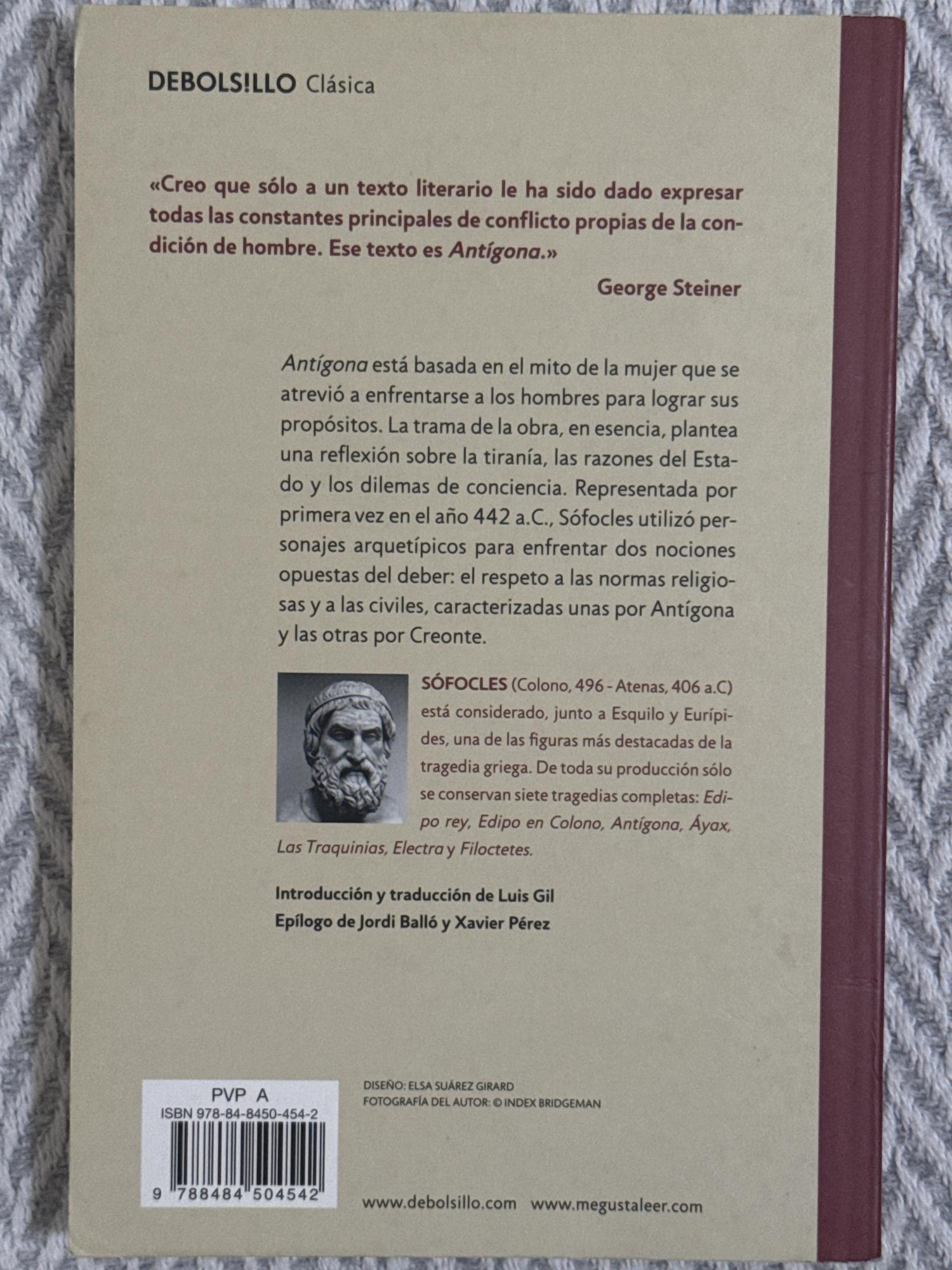 Antígona de Sófocles narra el conflicto entre la ley divina y la ley humana cuando Antígona desafía la orden del rey Creonte para otorgar sepultura a su hermano. La obra plantea dilemas morales universales sobre el deber, la justicia y la desobediencia civil.