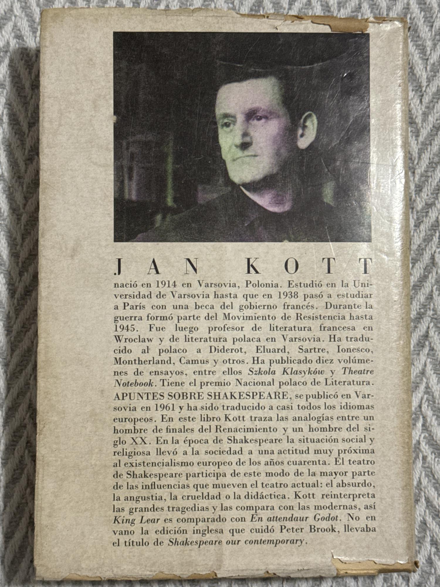 Kott ofrece una interpretación histórica y política de Shakespeare, conectando tragedias y comedias con las preocupaciones contemporáneas del siglo XX: el poder, la violencia, la manipulación y la fragilidad humana. El libro renovó la lectura de Shakespeare en Europa y América, influyendo tanto en la crítica académica como en directores teatrales. Su enfoque directo, provocador y comparativo lo convirtió en un clásico de los estudios teatrales modernos.