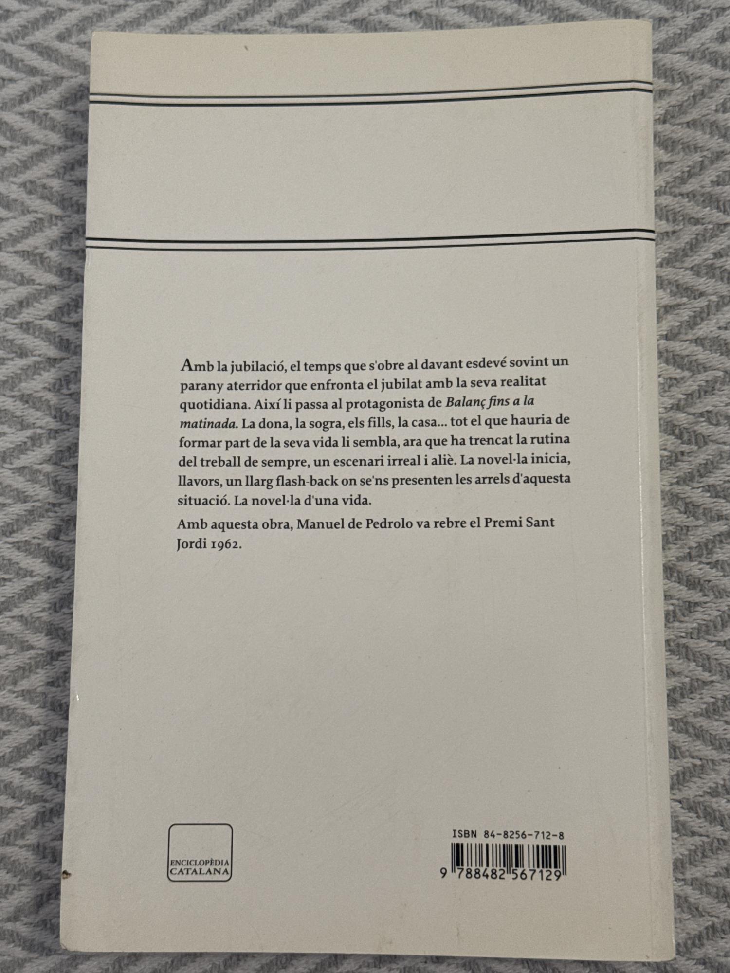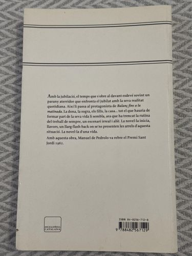 Balanç fins a la matinada de Manuel de Pedrolo és una novel·la de caràcter introspectiu en què el protagonista fa una reflexió sobre la seva vida, les relacions personals i el sentit de l’existència durant una nit de pensaments i records. L’obra combina anàlisi psicològica i reflexió moral, amb un estil directe i crític propi de l’autor.