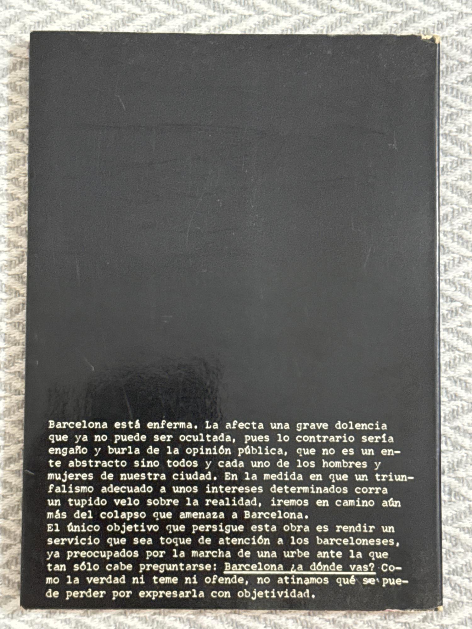 En Barcelona ¿a dónde vas?, los autores reflexionan sobre la evolución de la ciudad de Barcelona: sus problemas urbanísticos, los cambios socioculturales, las tensiones políticas municipales y las contradicciones en su crecimiento. Presentan un diagnóstico crítico del rumbo que toma la ciudad, cuestionando decisiones administrativas, desigualdades espaciales y el impacto del desarrollo urbano en la vida de los ciudadanos.