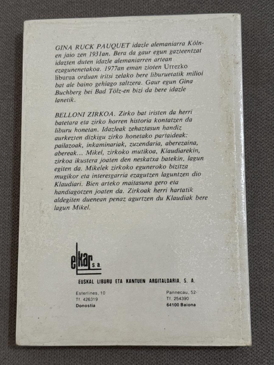 Euskal Liburu eta Kantuen Argitaldaria, 1985, Vasco / Euskara, 19 x 13cm, 140pp. Tapa blanda ilustrada. Interior profusamente ilustrado en B/N. Con señales normales de uso. Hojas amarillentas. En buen estado.