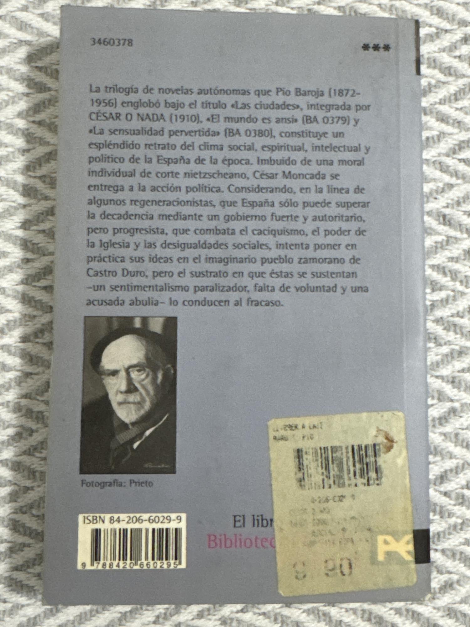 Esta novela de Pío Baroja, publicada originalmente en 1910 y reeditada en 2006 bajo ISBN 978 8420660295, es el primer volumen de la trilogía Las ciudades. Se centra en el personaje de César Moncada, quien cree que España solo puede salir de su decadencia mediante un gobierno autoritario pero progresista, y muestra su fracaso al intentar imponer sus ideales en el pueblo de Castro Duro.