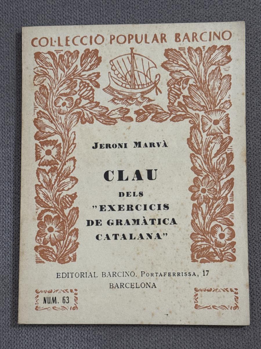 Clau dels Exercicis de Gramatica Catalana. Col·lecció Popular Barcino Nº 63