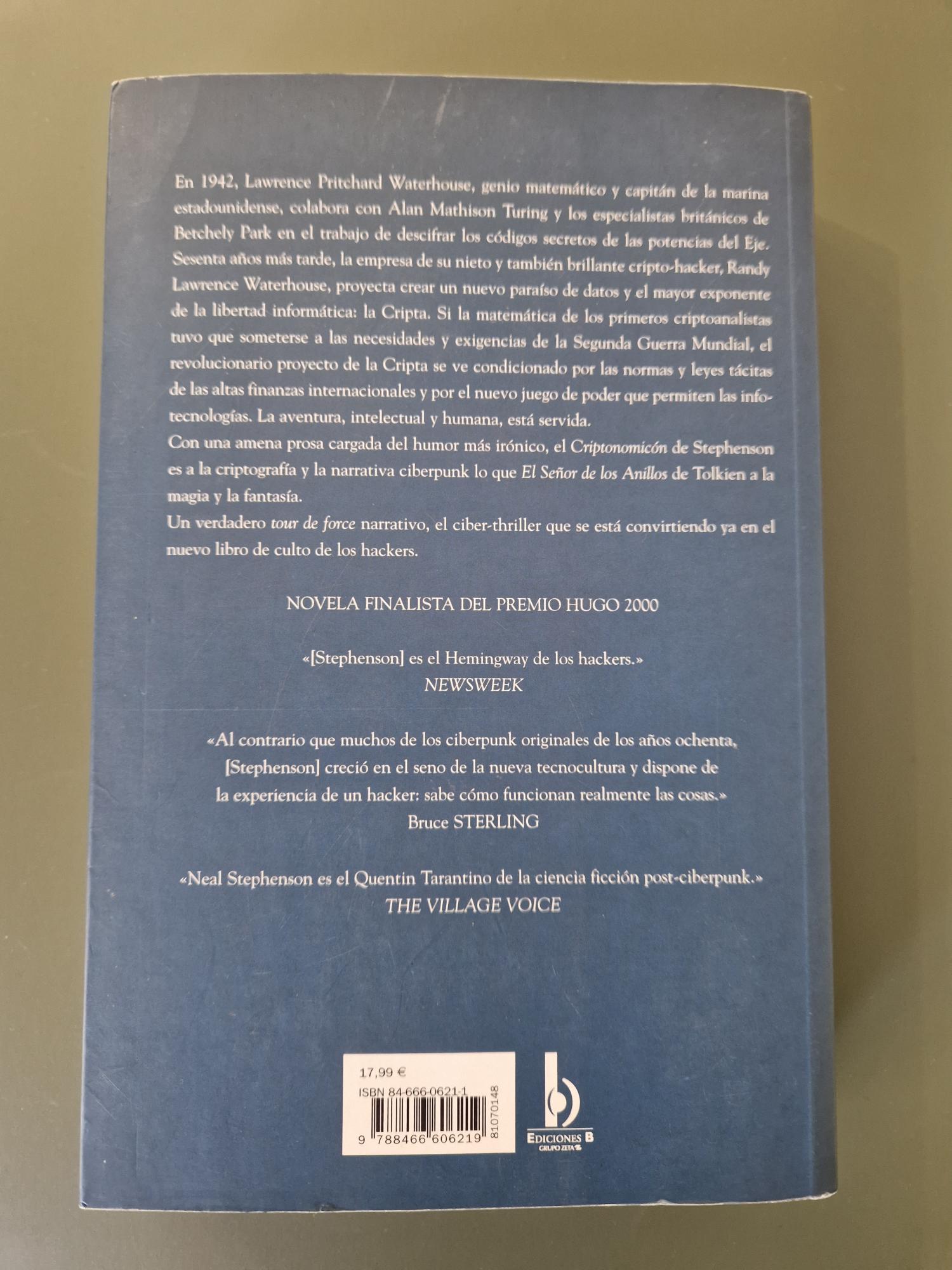 Neal Stephenson entrelaza con maestría pasado y presente en una trama donde la criptografía, la guerra y la tecnología se funden en una misma obsesión: el poder del código. Desde los descifradores de Enigma en la Segunda Guerra Mundial hasta los hackers del siglo XXI, Criptonomicón explora la frontera entre el secreto y la libertad. Una novela monumental que combina historia, ciencia y aventura intelectual.