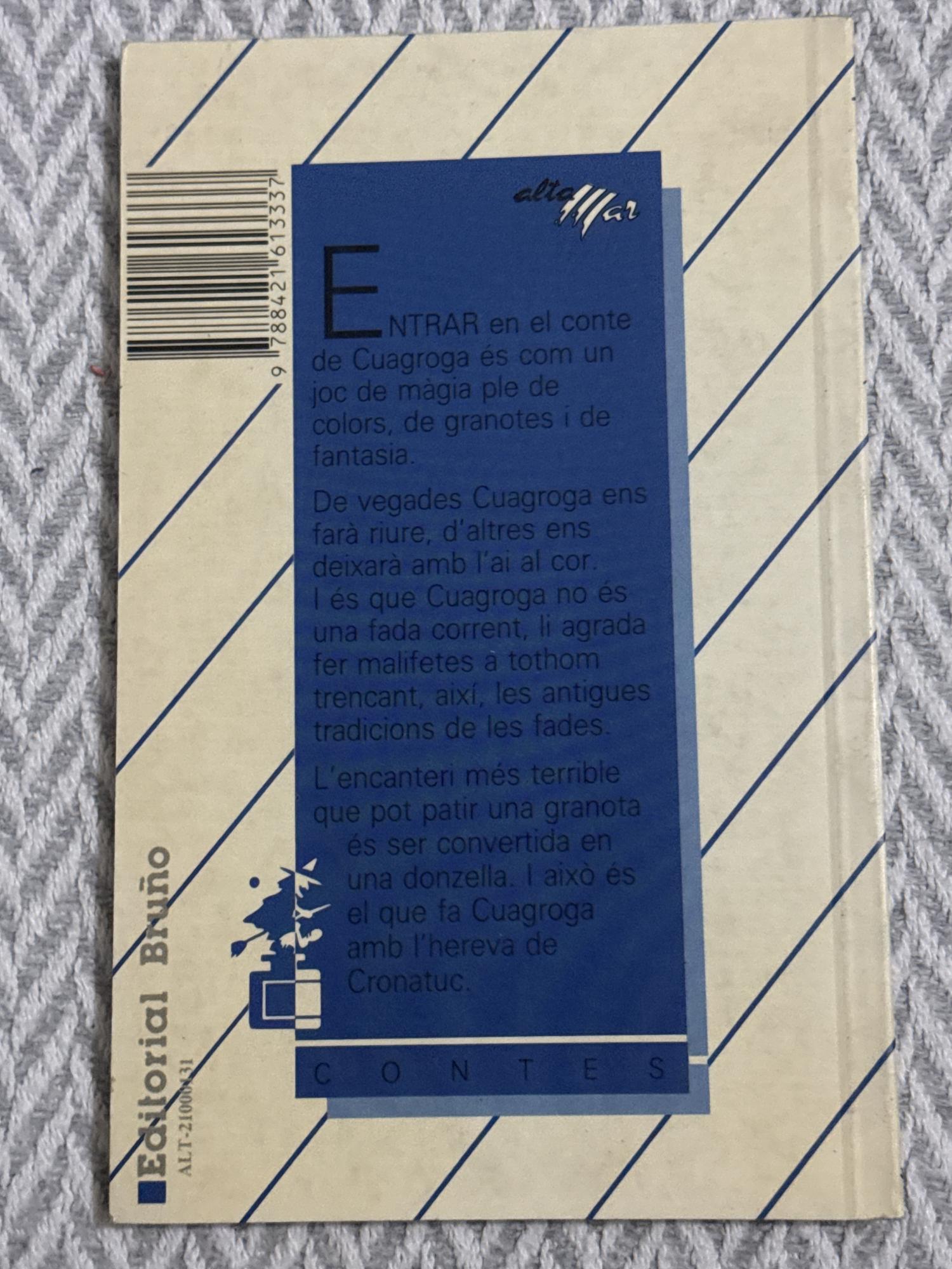 Cuagroga, una fada trastocada explica les aventures d’una fada que, per alguna raó, està “trastocada” i viu situacions estranyes i màgiques. La història combina fantasia, màgia i humor, pensada per a lectors joves. És ideal per a nens i nenes d’uns 10 a 12 anys, oferint una lectura lúdica i evocadora.