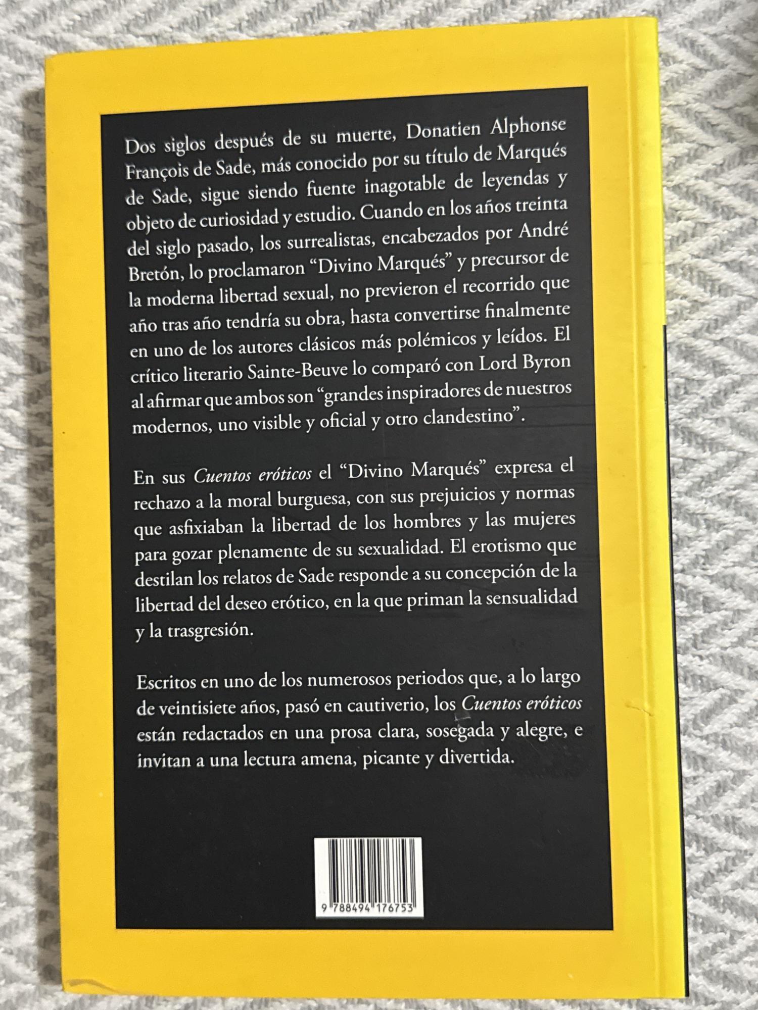 Esta edición reúne una colección de relatos escritos por Sade durante sus años en prisión, centrados en la exploración de la libertad sexual, el deseo y la transgresión.