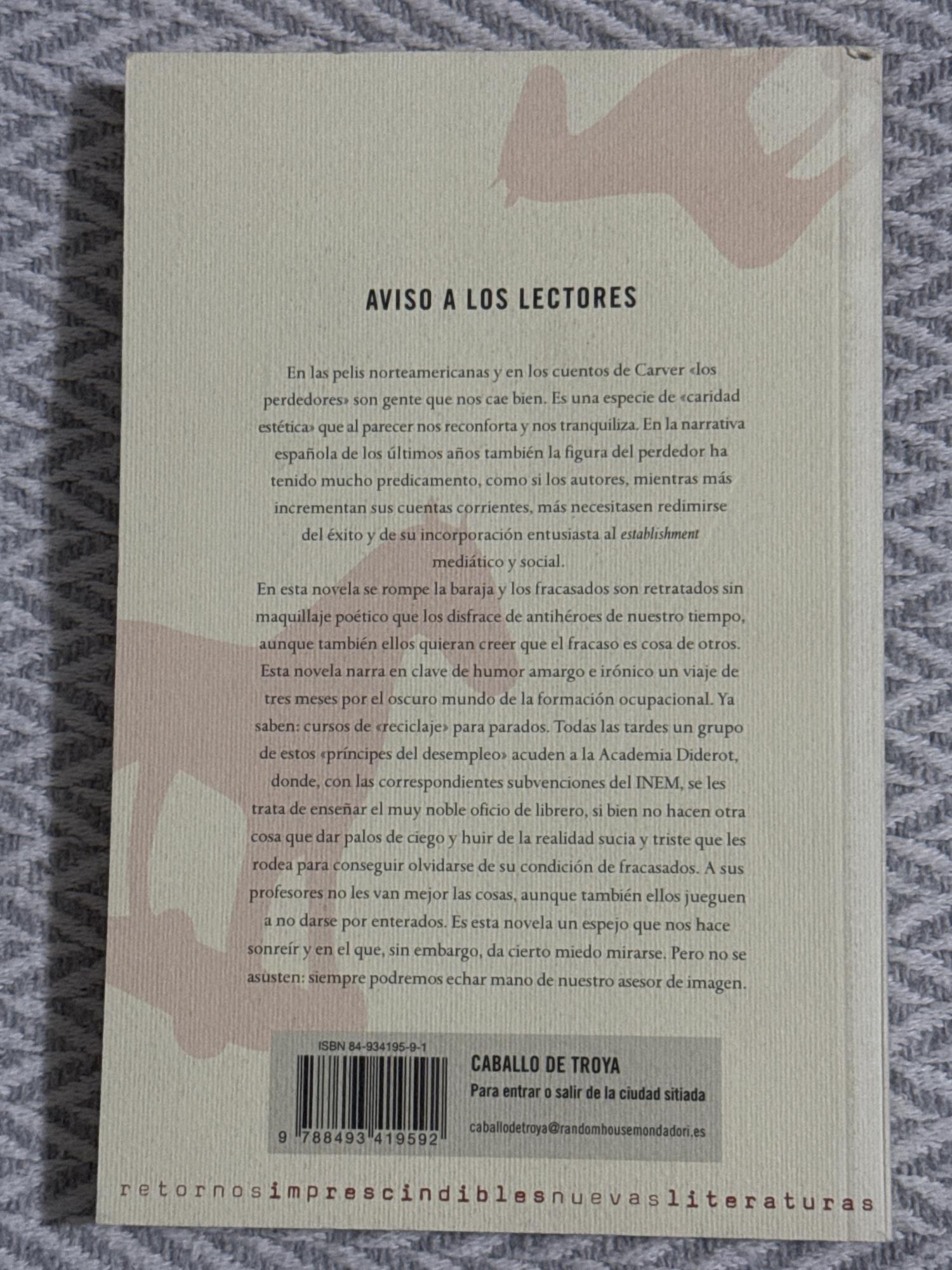 La novela retrata tres meses en la vida de un grupo de personas desempleadas que asisten a un curso subvencionado por el INEM para formarse como libreros.