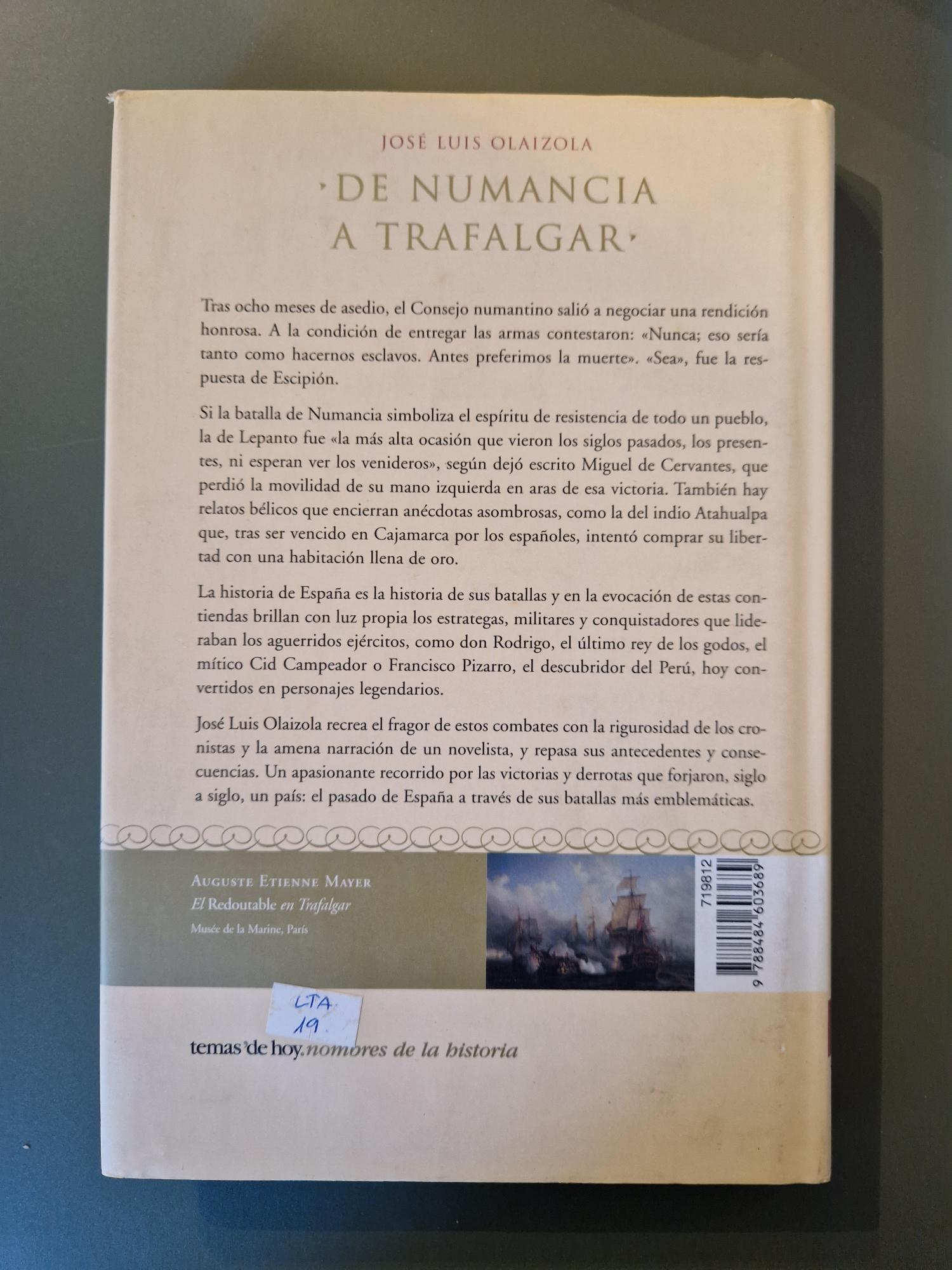 De Numancia a Trafalgar. Victorias y derrotas de nuestra Historia, de José Luis Olaizola, recorre algunos de los episodios más decisivos del pasado español, desde gestas heroicas hasta fracasos que marcaron un rumbo inesperado. Con un estilo ágil y divulgativo, el autor revive batallas, personajes y momentos clave para entender cómo se ha construido la identidad histórica del país. Un viaje apasionante que combina rigor, narrativa y una mirada humanizadora sobre los protagonistas de nuestra memoria colectiva.