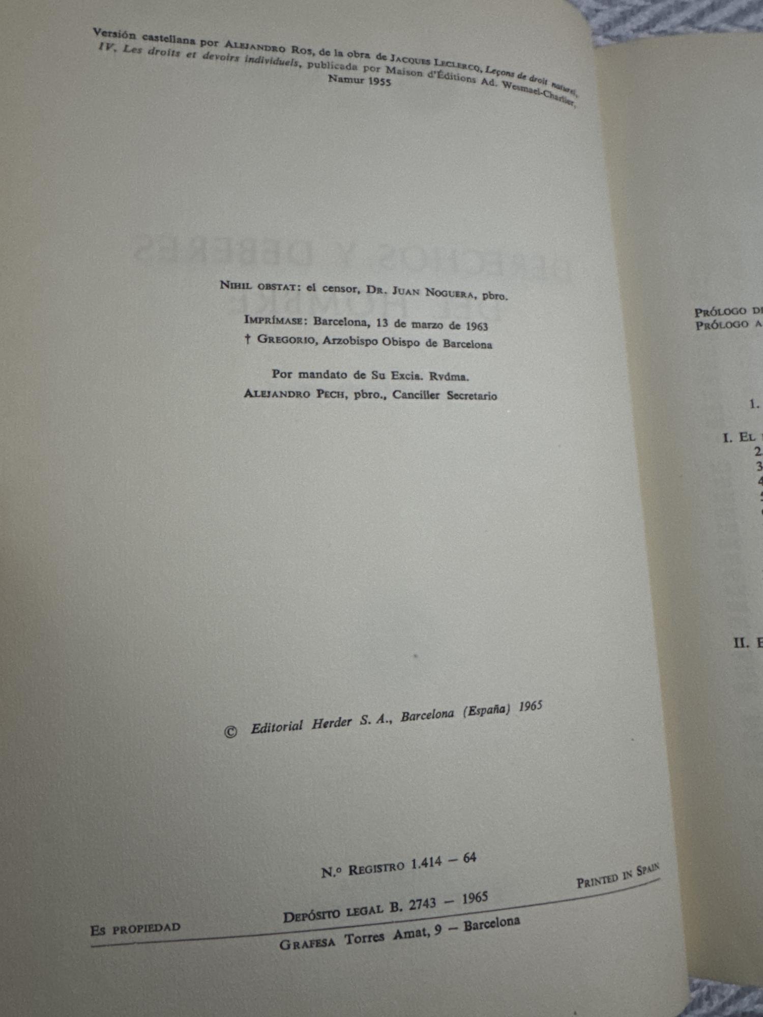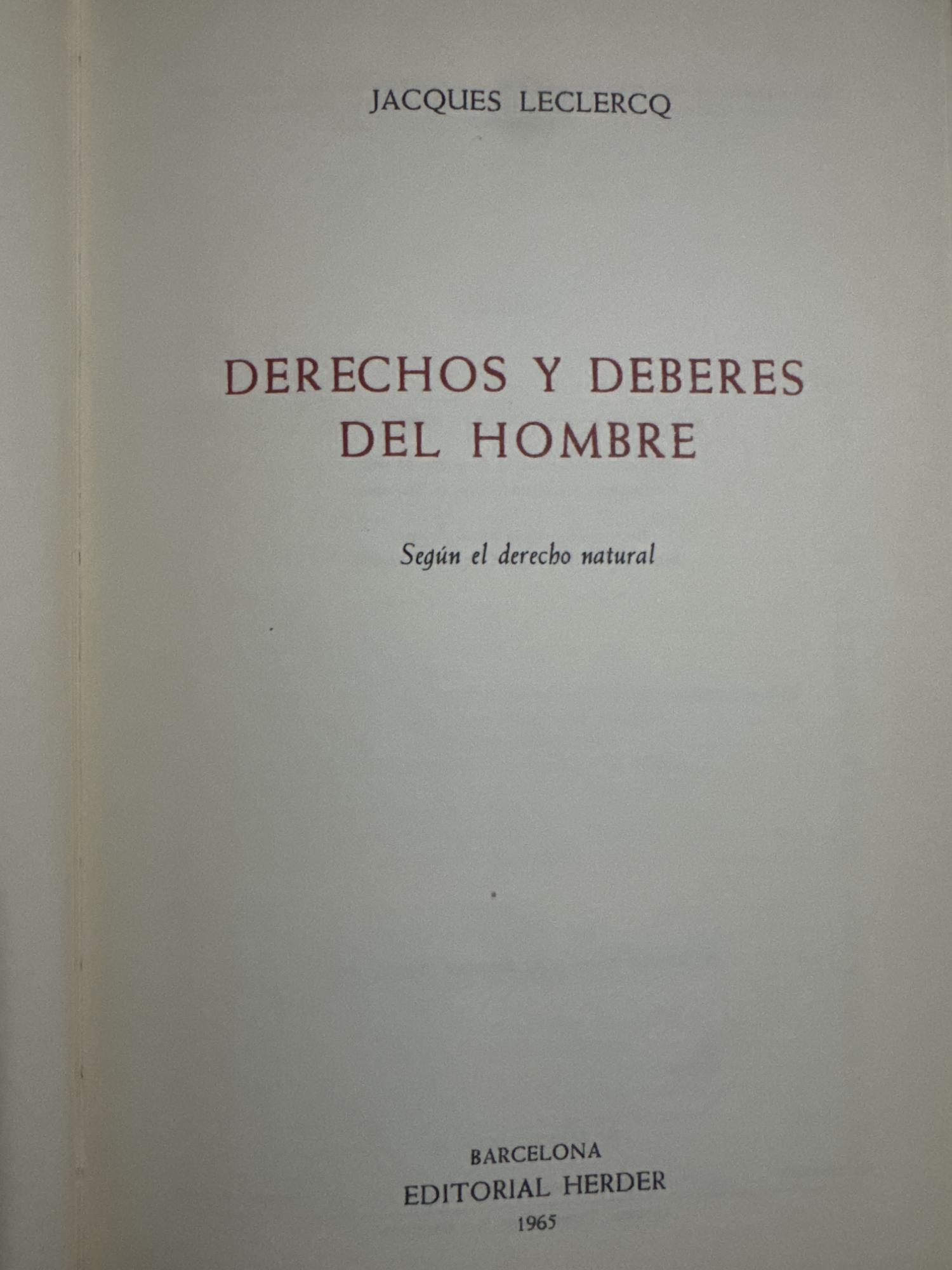 Derechos y deberes del hombre. Según el derecho natural es una obra de filosofía jurídica y moral centrada en la noción de derecho natural como fundamento de los derechos y deberes humanos. El libro expone los principios universales que rigen la dignidad de la persona, la justicia y la responsabilidad moral, situándolos por encima del derecho positivo y de los sistemas políticos concretos.