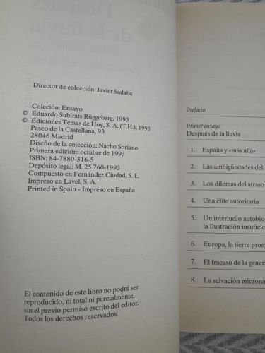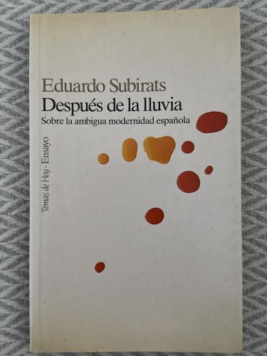 Después de la lluvia de Eduardo Subirats es un ensayo de pensamiento crítico y cultural que reflexiona sobre la crisis de la modernidad, la cultura contemporánea y el papel del intelectual tras las grandes catástrofes históricas y simbólicas del siglo XX. La obra combina análisis filosófico, crítica cultural y reflexión ética sobre el presente.