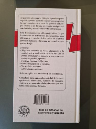 50.000 acepciones, pronunciación figurada del japonés, gramática japonesa y española, verbos y conjugaciones, vocabulario temático, abreviaturas.