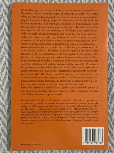 Dinos cómo sobrevivir a nuestra locura de Kenzaburo Ōe reúne relatos en los que el autor aborda la culpa, la pérdida y la fragilidad humana mediante símbolos poderosos. En estos textos confluyen lo real y lo mítico para mostrar cómo enfrentamos lo imposible en la experiencia cotidiana.
