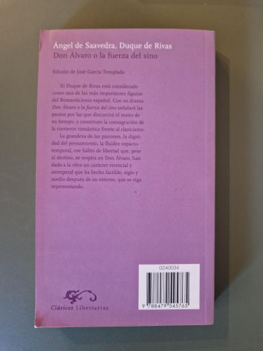 En Don Álvaro o la fuerza del sino, el Duque de Rivas despliega un drama romántico marcado por el destino trágico y las pasiones imposibles. Persecuciones, malentendidos y juramentos rotos tejen una historia donde el azar y la fatalidad gobiernan cada paso. Con un pulso emocional intenso y escenarios de gran fuerza poética, esta obra cumbre del romanticismo español arrastra al lector hacia un torbellino de honor, amor y tragedia inevitable.