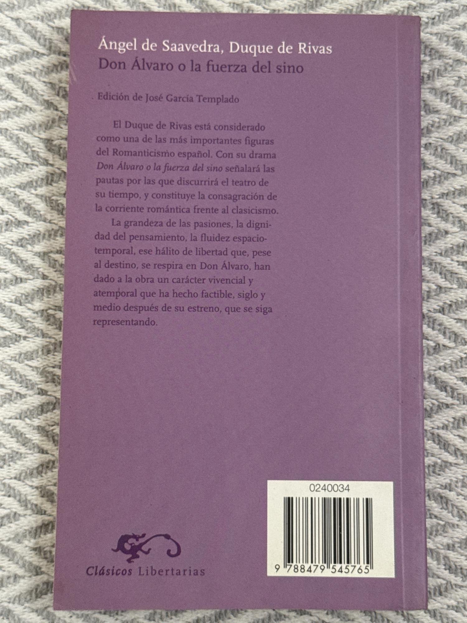 Don Álvaro o la fuerza del sino es una tragedia romántica que gira en torno al destino fatal de Don Álvaro, marcado por la culpa, la pasión y la fatalidad. La obra explora temas como el honor, la venganza, el destino inevitable y el conflicto entre sentimientos y deberes sociales. Estos elementos la convierten en un clásico del teatro romántico español.