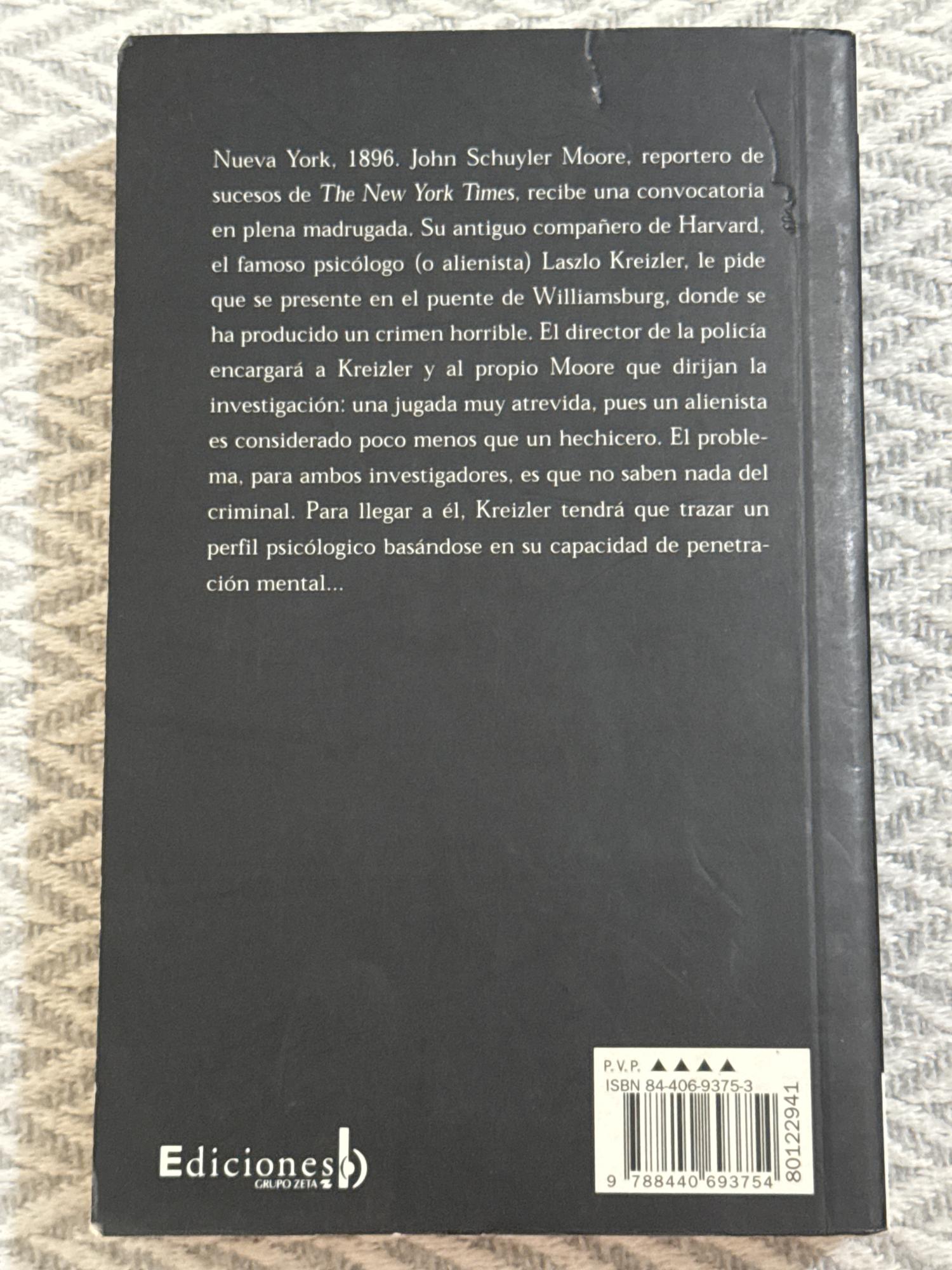 La historia transcurre en Nueva York, año 1896. El relato comienza cuando John Schuyler Moore, periodista de sucesos del New York Times, es convocado por su antiguo compañero de universidad, el doctor Laszlo Kreizler, un “alienista”, es decir un precursor de la psicología criminal, especializado en enfermedades mentales.
