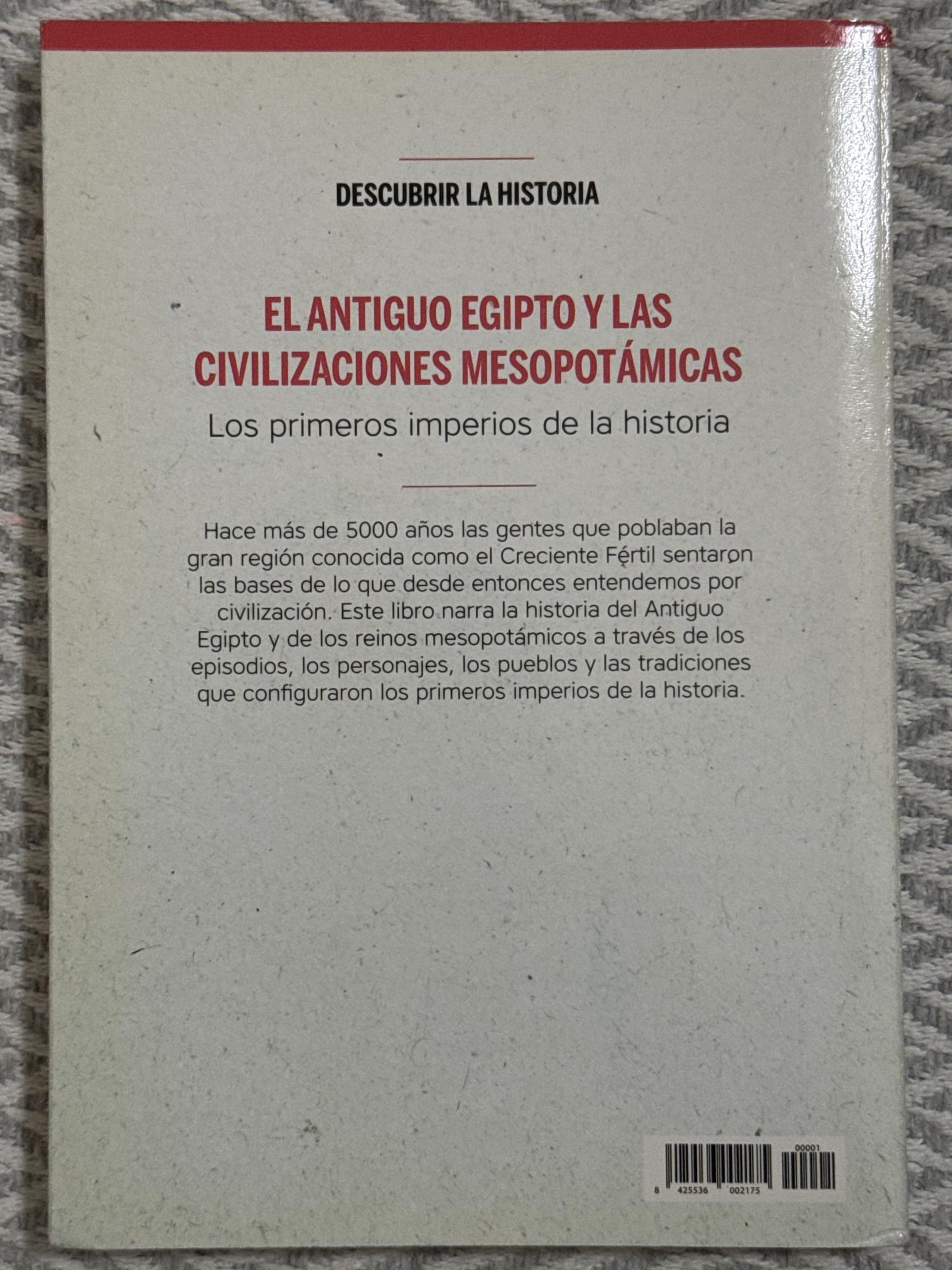 El libro repasa los grandes logros del Antiguo Egipto —sus faraones, templos, creencias y arte— y los relaciona con las civilizaciones vecinas de Mesopotamia, Fenicia y Persia. Con abundantes ilustraciones y mapas, ofrece una visión panorámica de las primeras culturas urbanas del mundo. Está pensado como texto introductorio tanto para estudiantes como para lectores interesados en la historia antigua.