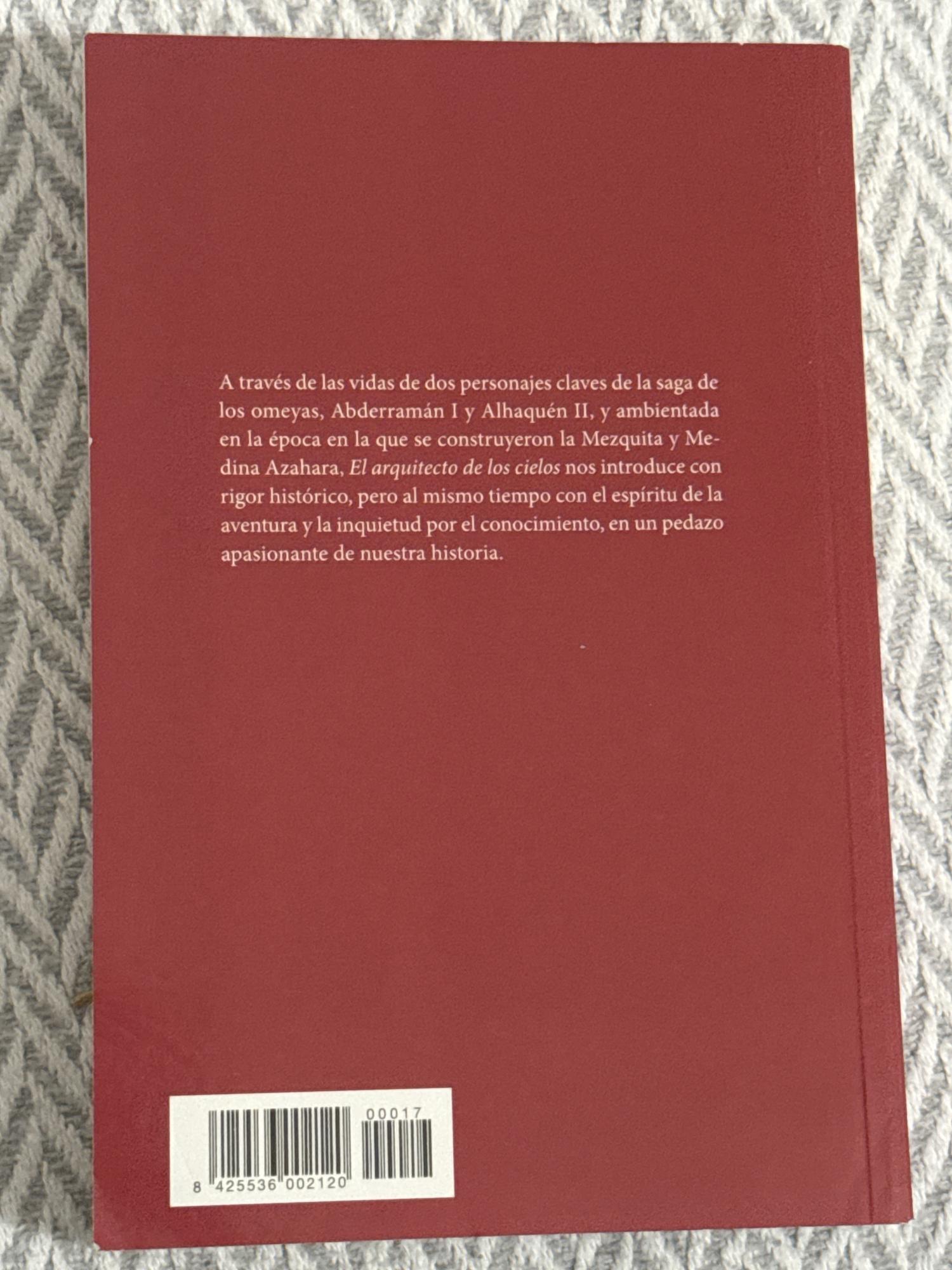 El arquitecto de los cielos narra la historia de los hombres que, tras huir de Damasco ante las invasiones abasíes, se instalan en Córdoba y contribuyen a la creación de monumentos emblemáticos del califato omeya, como la Gran Mezquita y Medina Azahara. A lo largo de la novela se entrelazan elementos de política, religión y filosofía, ilustrando la convivencia y las tensiones entre judíos, musulmanes y cristianos en una época de esplendor cultural. La obra combina acción histórica con reflexiones sobre el conocimiento, la fe y la arquitectura como expresión de poder.