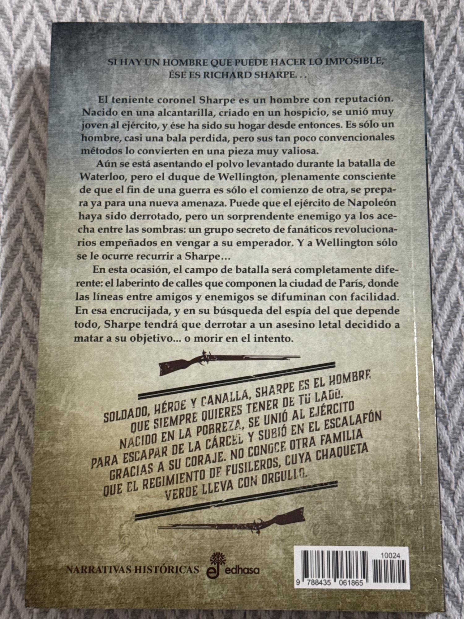 Richard Sharpe, teniente coronel con reputación de héroe forjado desde la pobreza, todavía lidia con las secuelas de la batalla de Waterloo. El Duque de Wellington es consciente de que el fin de una guerra no significa paz, sino el inicio de nuevas sombras: un grupo de fanáticos revolucionarios trama vengarse de Napoleón.