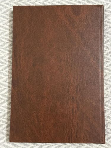Tapa dura símil piel con letras grabadas en dorado.