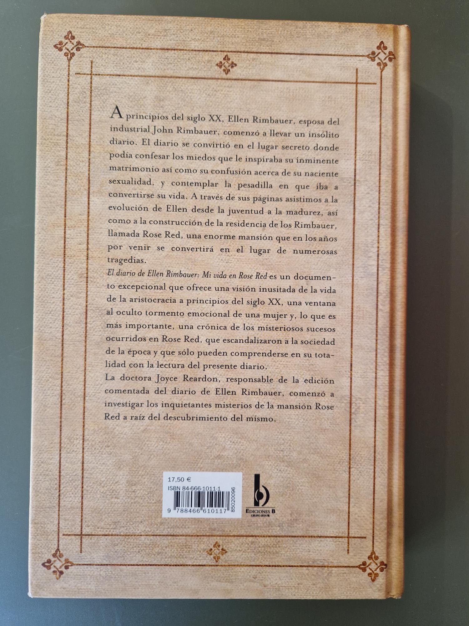 En El diario de Ellen Rimbauer. Mi vida en Rose Red, Stephen King y Ridley Pearson expanden el universo de la miniserie televisiva Rose Red. Presentado como el testimonio íntimo de Ellen Rimbauer, el libro desvela los orígenes y los oscuros secretos de la misteriosa mansión Rose Red. A través de una narración inquietante y envolvente, esta obra profundiza en la obsesión, el aislamiento y la presencia sobrenatural que rodea a la casa maldita.
