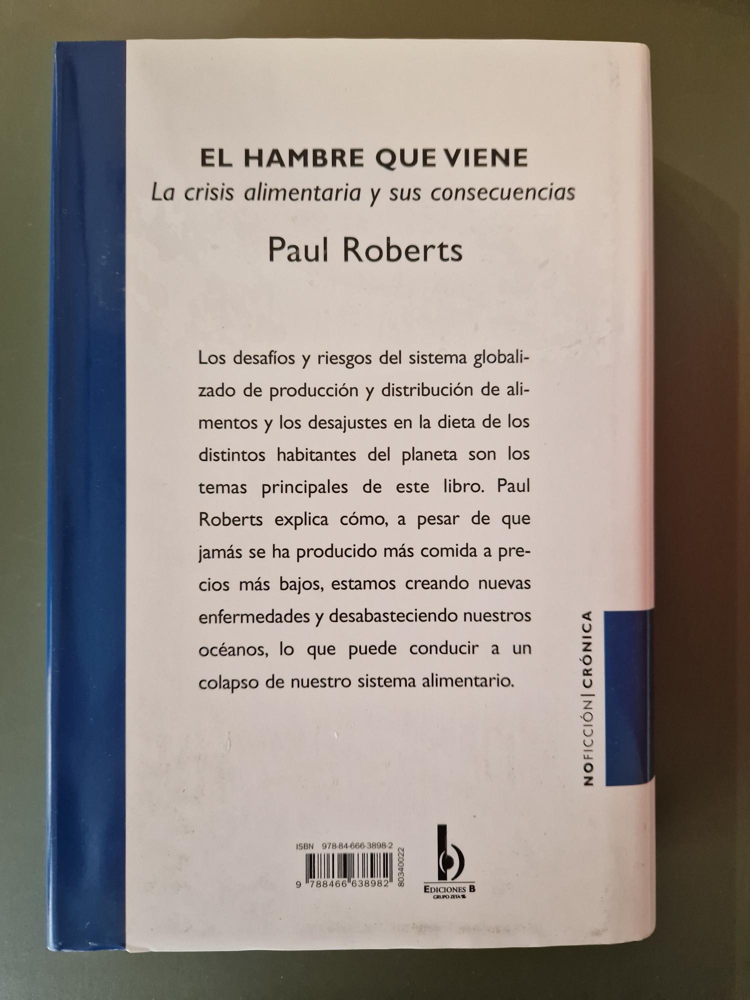 Paul Roberts analiza en este libro los riesgos que amenazan el sistema alimentario global, desde la dependencia del petróleo hasta la fragilidad de las cadenas de producción y distribución. A través de un enfoque riguroso y documentado, examina las causas de la crisis alimentaria y sus posibles consecuencias sociales, económicas y ambientales. La obra advierte sobre la necesidad de replantear cómo producimos y consumimos alimentos. Un ensayo revelador que invita a reflexionar sobre el futuro de la alimentación en el mundo.