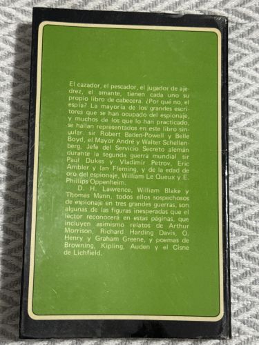 Antología de relatos y textos sobre espionaje recopilados y seleccionados por Graham Greene, que reúne historias breves, piezas literarias y reflexiones centradas en la figura del espía y las intrigas internacionales. La obra recoge voces clásicas y modernas que exploran el tema del espionaje desde perspectivas diversas, combinando ficción, anécdotas y narrativa de misterio.