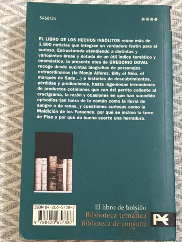 El libro de los hechos insólitos recopila más de 1.500 noticias, curiosidades y datos sorprendentes que giran alrededor de fenómenos poco comunes, personajes extraordinarios, inventos peculiares y sucesos históricos curiosos.