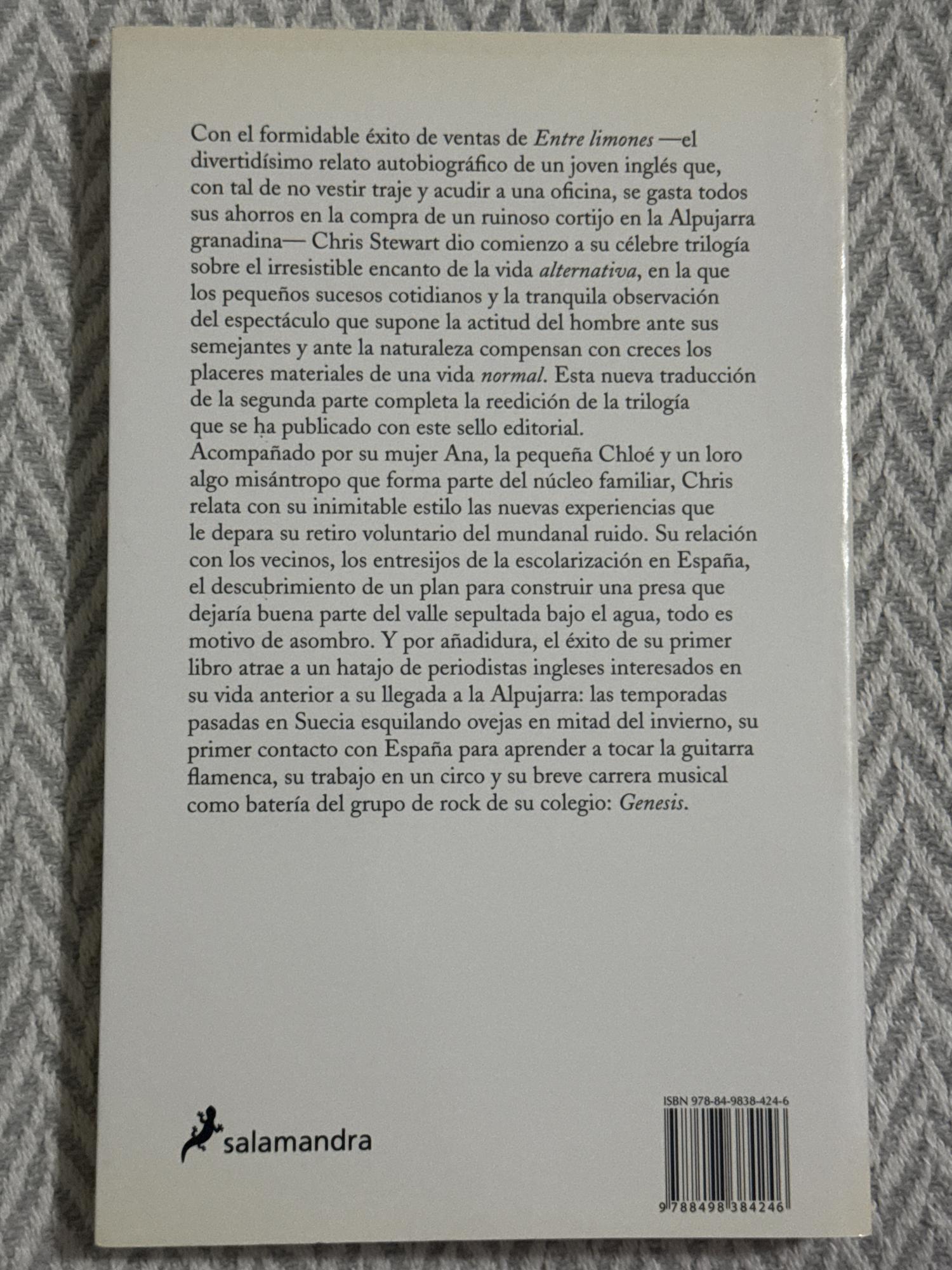 Narra la experiencia real del autor cuando se instala en una finca rural de las Alpujarras andaluzas, enfrentándose a la vida campesina, los vecinos y los imprevistos cotidianos. Con humor y tono cercano, el libro retrata el choque cultural entre un británico urbano y el mundo rural español. Es un relato costumbrista, amable y muy descriptivo del paisaje y la vida local.