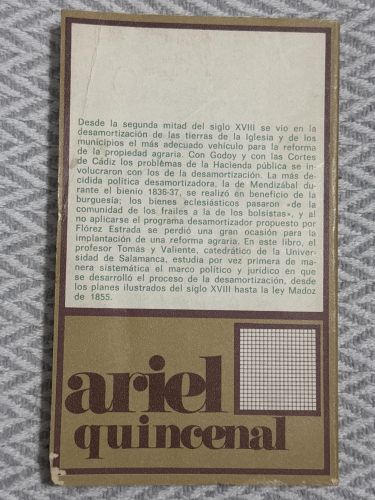 Estudia el contexto político e institucional en el que se desarrollaron las desamortizaciones españolas del siglo XIX. Tomás y Valiente analiza las decisiones legislativas, los intereses ideológicos y las tensiones entre Estado, Iglesia y propiedad privada. La obra ofrece una interpretación rigurosa desde la historia del derecho y la historia política.