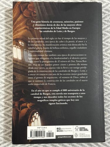 Ambientada en la primera mitad del siglo XIII, la novela sigue a Teresa Rendol, una joven pintora de origen cátaro que se convierte en testigo de la construcción de las grandes catedrales góticas — Burgos y León — y descubre un secreto ancestral llamado “el número de Dios”. La trama combina intriga, contexto histórico y tensión religiosa, ofreciendo una narración rica en ambientación y misterio.