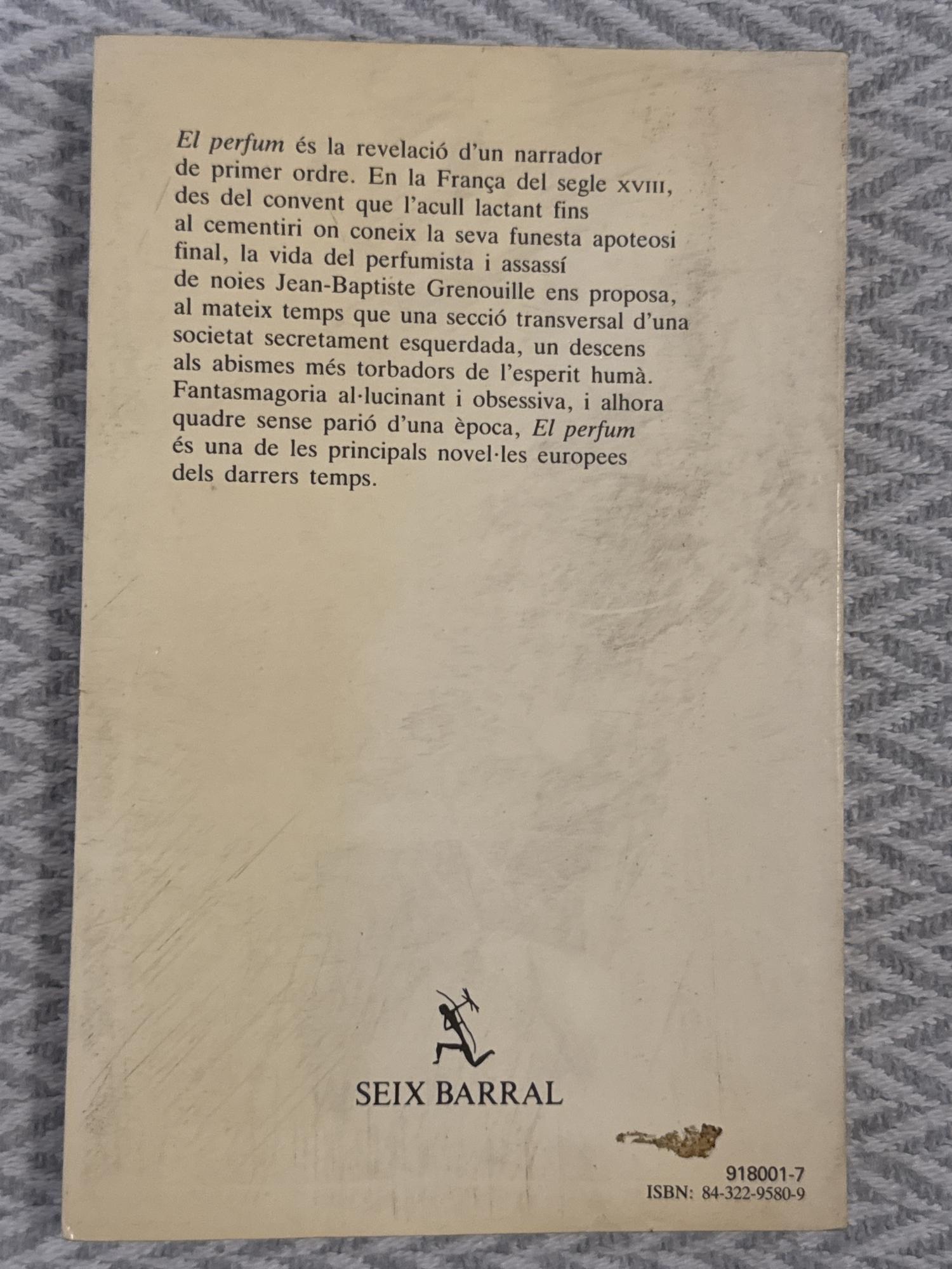 Jean-Baptiste Grenouille neix amb un olfacte extraordinari però sense olor pròpia, fet que el converteix en un ésser aïllat. Obsessionat amb capturar l’essència perfecta, inicia una sèrie de crims per crear el perfum ideal. Una novel·la inquietant que explora la genialitat, la obsessió i els límits de la moral humana.