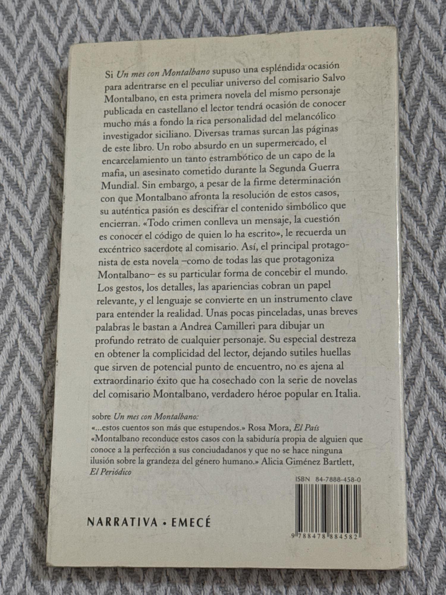 El comisario Salvo Montalbano se ve envuelto en una investigación con varios hilos que parecen no tener relación entre sí: un atraco absurdo en un supermercado, la detención teatral de un jefe mafioso y, finalmente, el hallazgo de un doble asesinato ocurrido durante la Segunda Guerra Mundial, acompañado de símbolos misteriosos como una figura de perro de terracota.