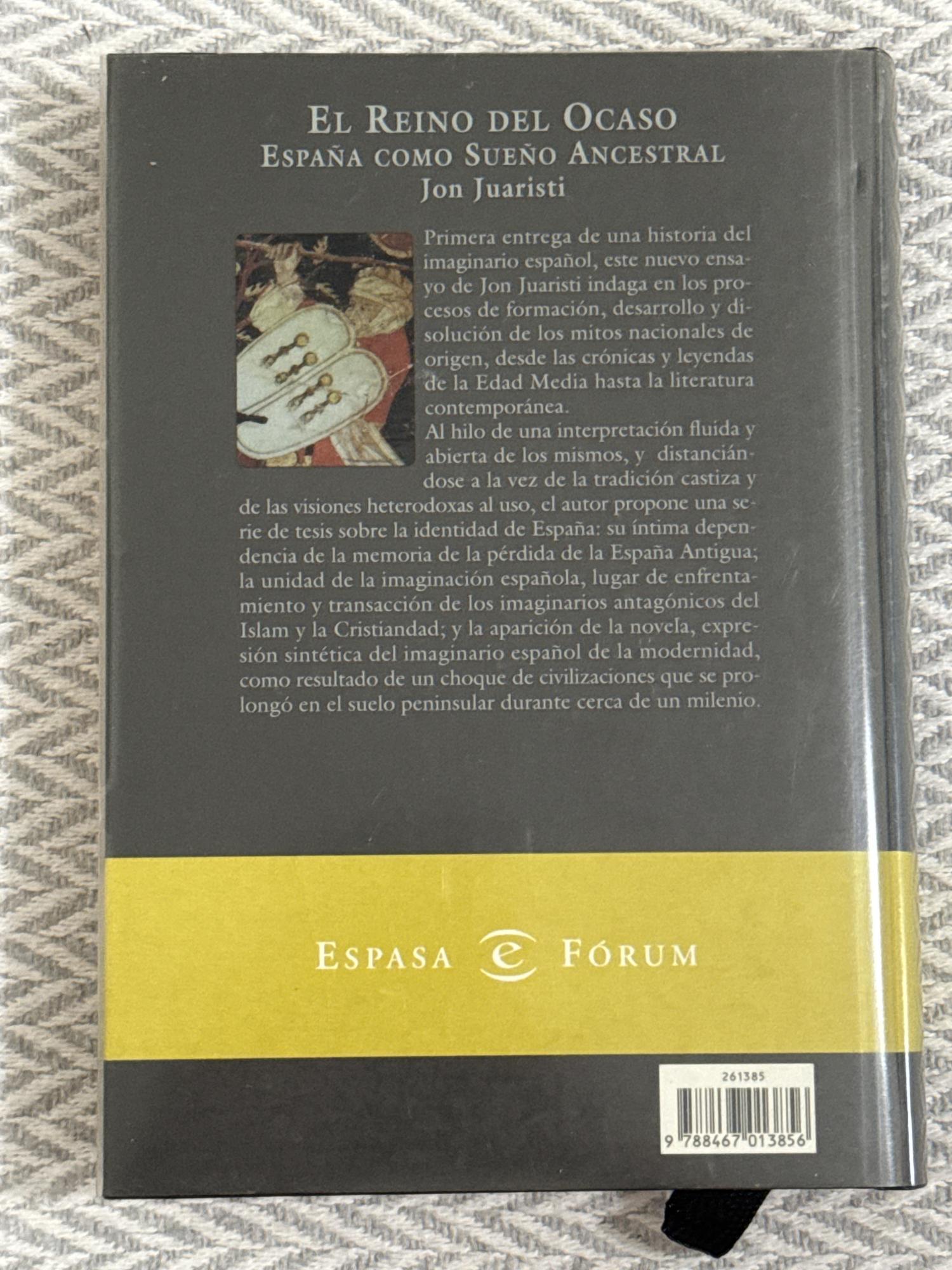 El reino del ocaso es un ensayo que forma la primera entrega de lo que Juaristi describe como una historia del “imaginario español”. El autor investiga cómo se han formado, desarrollado y transformado los mitos nacionales que han configurado la identidad española, desde sus raíces medievales hasta el presente.