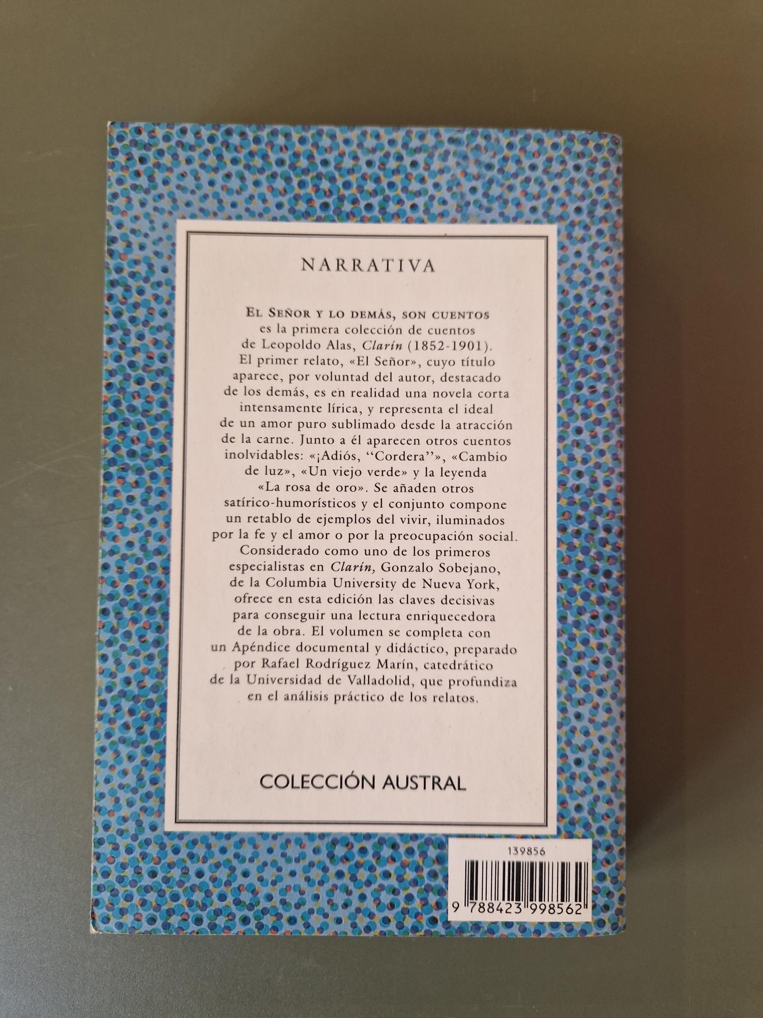 En estos relatos magistrales, Leopoldo Alas “Clarín” despliega una mirada aguda y penetrante sobre la sociedad de su tiempo. Con ironía sutil y hondura psicológica, sus personajes revelan las contradicciones morales, las miserias cotidianas y las aspiraciones ocultas del alma humana. Cada cuento es una pieza de orfebrería narrativa donde la crítica social y la compasión conviven con naturalidad. Un conjunto imprescindible para descubrir la maestría de uno de los grandes autores del realismo español