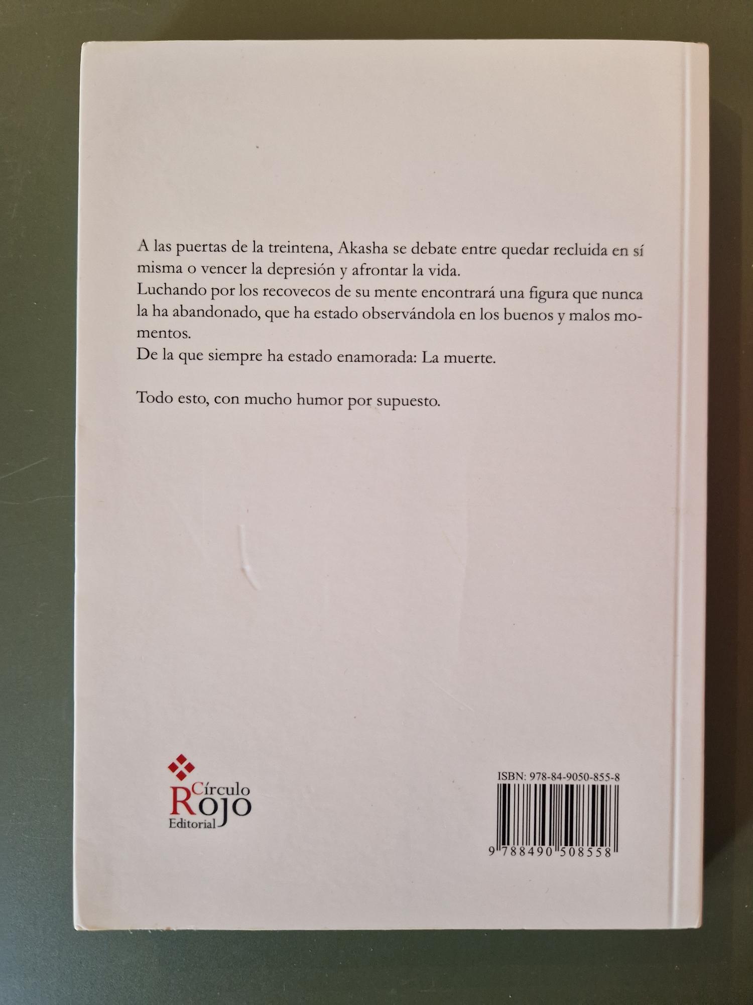 Al borde de la treintena, Akasha se debate entre rendirse al encierro de su mente o enfrentarse, de una vez por todas, a la vida. En su lucha contra la depresión, descubrirá una presencia constante: la Muerte, su silenciosa compañera, observándola en cada caída y en cada intento de renacer. Una historia sobre el abismo, el amor y la ironía de seguir respirando... con mucho humor, por supuesto.