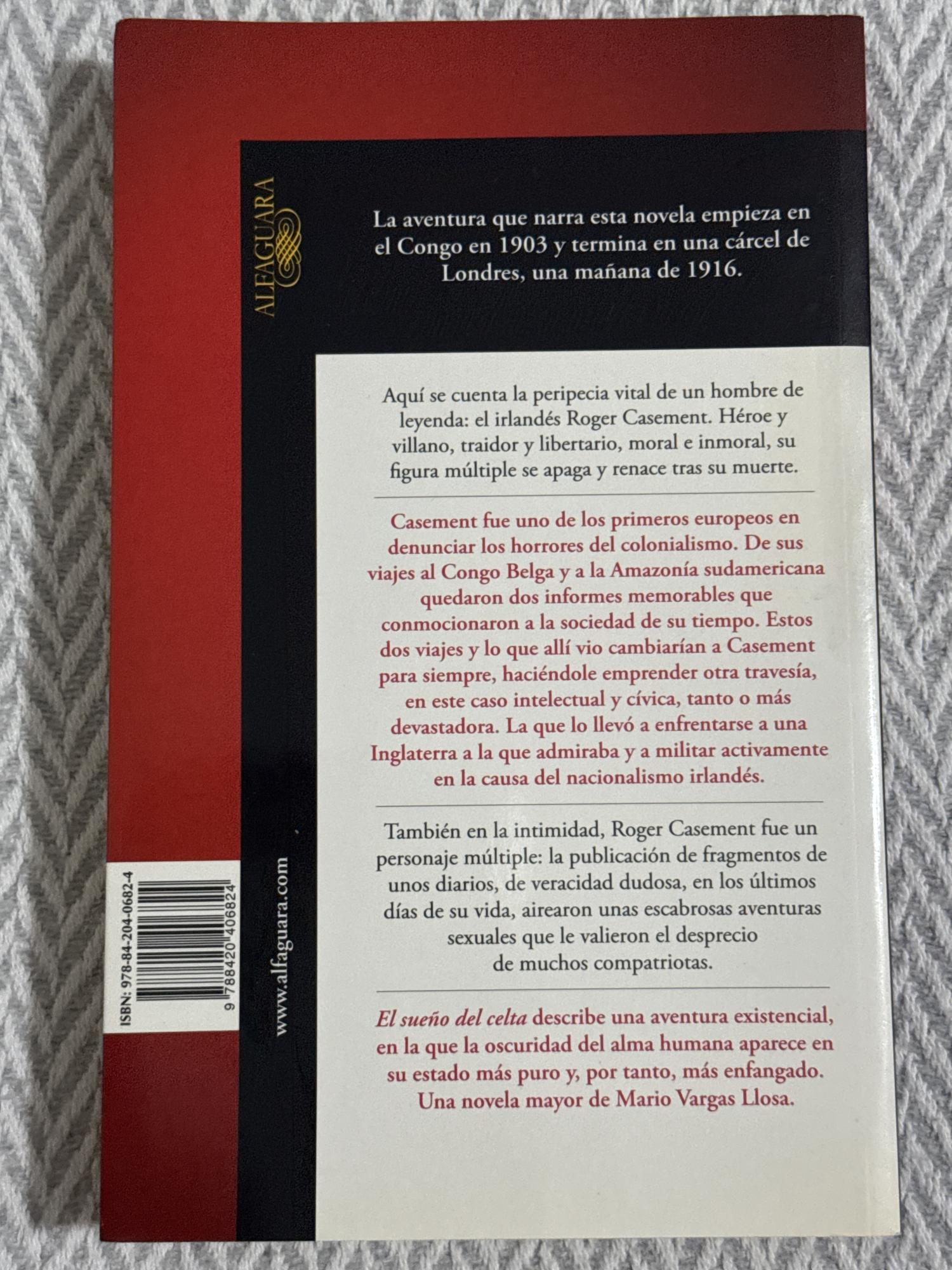 La novela recrea la vida de Roger Casement, diplomático y activista irlandés, que denunció los abusos coloniales en el Congo y en la Amazonía a comienzos del siglo XX. A través de su trayectoria, Vargas Llosa traza un retrato apasionante de la lucha contra la explotación y de las contradicciones de un hombre entre la política, la ética y sus propios ideales. Escrita con rigor histórico y fuerza narrativa, es a la vez una biografía novelada y una reflexión sobre el poder y la dignidad humana.