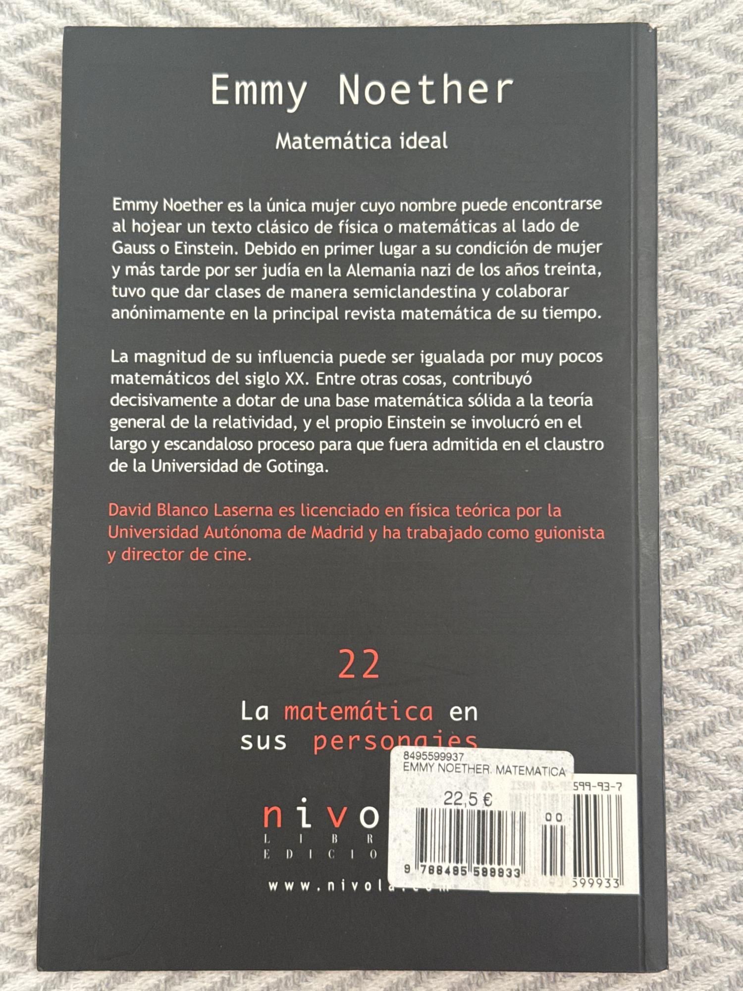 El libro presenta la vida y obra de Emmy Noether, destacando sus contribuciones fundamentales al álgebra y la física teórica. A través de un enfoque divulgativo, muestra tanto su impacto científico como las dificultades personales y profesionales que enfrentó. Es una obra accesible que acerca una figura clave de las matemáticas del siglo XX.