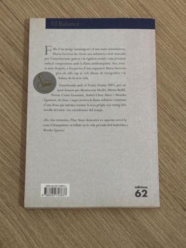Edicions 62, 2004, Catalán, 22.6 x 15.2cm, 160pp. Tapa blanda ilustrada. Premio "Donna 2003". Muy buen estado.