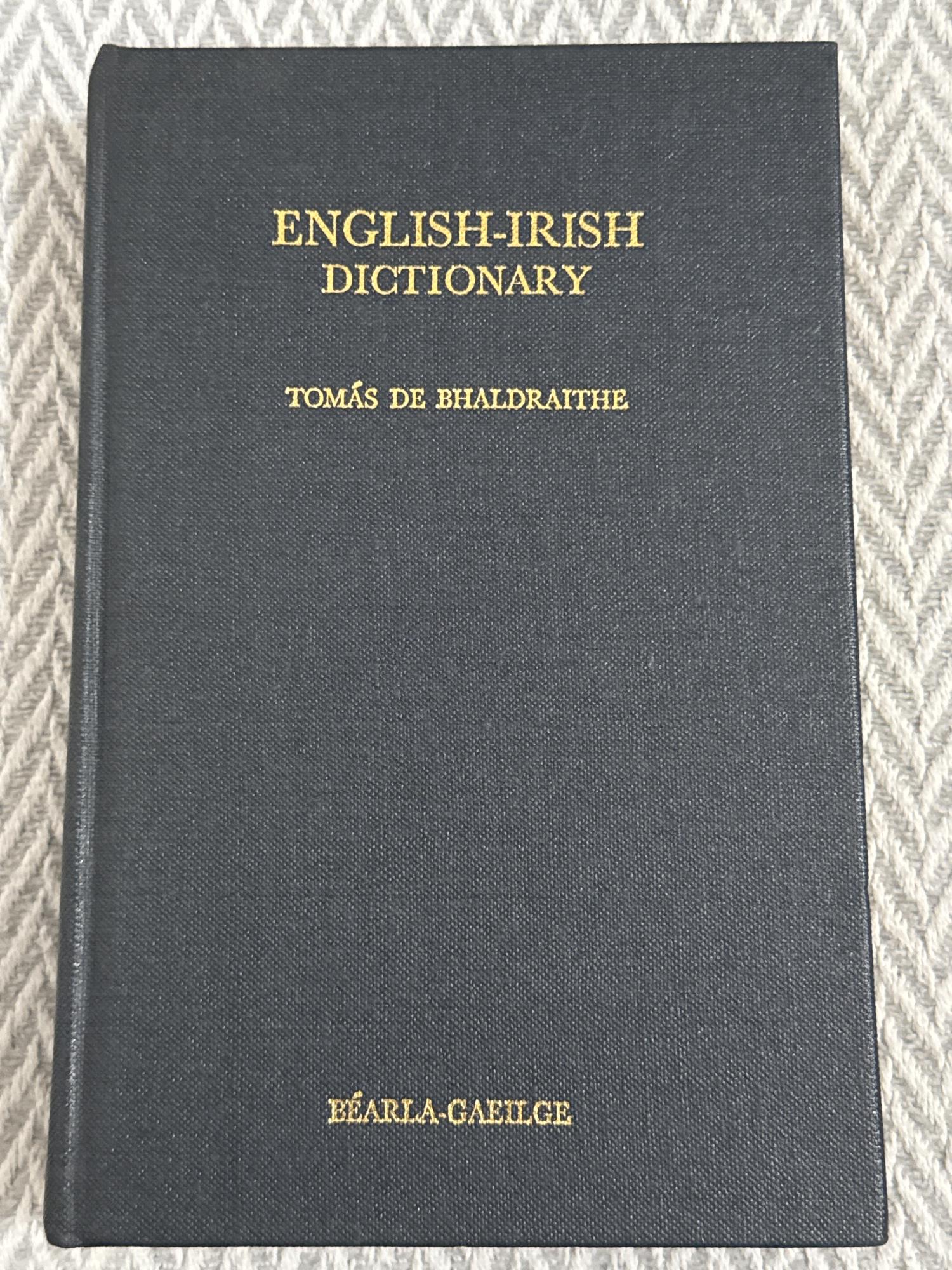 El English-Irish Dictionary, compilado por Tomás de Bhaldraithe y publicado originalmente en 1959 por la Oifig an tSoláthair (Oficina de Publicaciones del Estado Irlandés), es uno de los diccionarios más influyentes y duraderos para el aprendizaje y traducción entre el inglés y el irlandés (gaeilge).