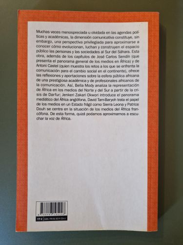 Esfera pública africana. Medios para las democracias analiza el papel crucial que desempeñan los medios de comunicación en la construcción y consolidación de las democracias del continente africano. A través de casos concretos y un enfoque comparativo, los autores muestran cómo la prensa, la radio y las nuevas tecnologías abren espacios de participación, transparencia y debate ciudadano. Un estudio riguroso y esclarecedor que invita a comprender la diversidad, los retos y el enorme potencial democrático de las sociedades africanas contemporáneas.