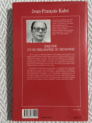 Kahn ofrece una reflexión sobre la mentira como fenómeno filosófico, psicológico y social. Examina cómo la mentira no es solo un error individual o moral, sino que también puede tener raíces profundas en la cultura, el poder, la ideología y la condición humana. La obra investiga las paradojas entre verdad y falsedad, entre apariencia y realidad, señalando que la mentira puede adoptar múltiples formas y funciones en la vida intelectual, política y personal.