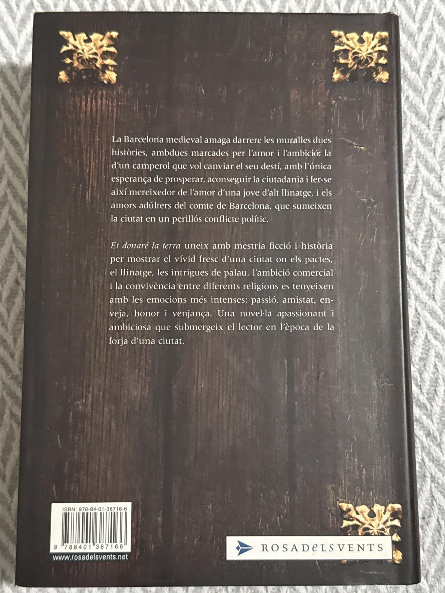 Et donaré la terra es una novela épica situada en la Barcelona del siglo XI, donde se entrelazan dos grandes historias: la de un joven campesino que busca prosperar y ganarse la vida en la ciudad, y la de los amores y conflictos del conde de Barcelona ante una crisis política y social. La novela combina intriga, ambición, honor y pasión dentro de un retrato sólido de la vida medieval