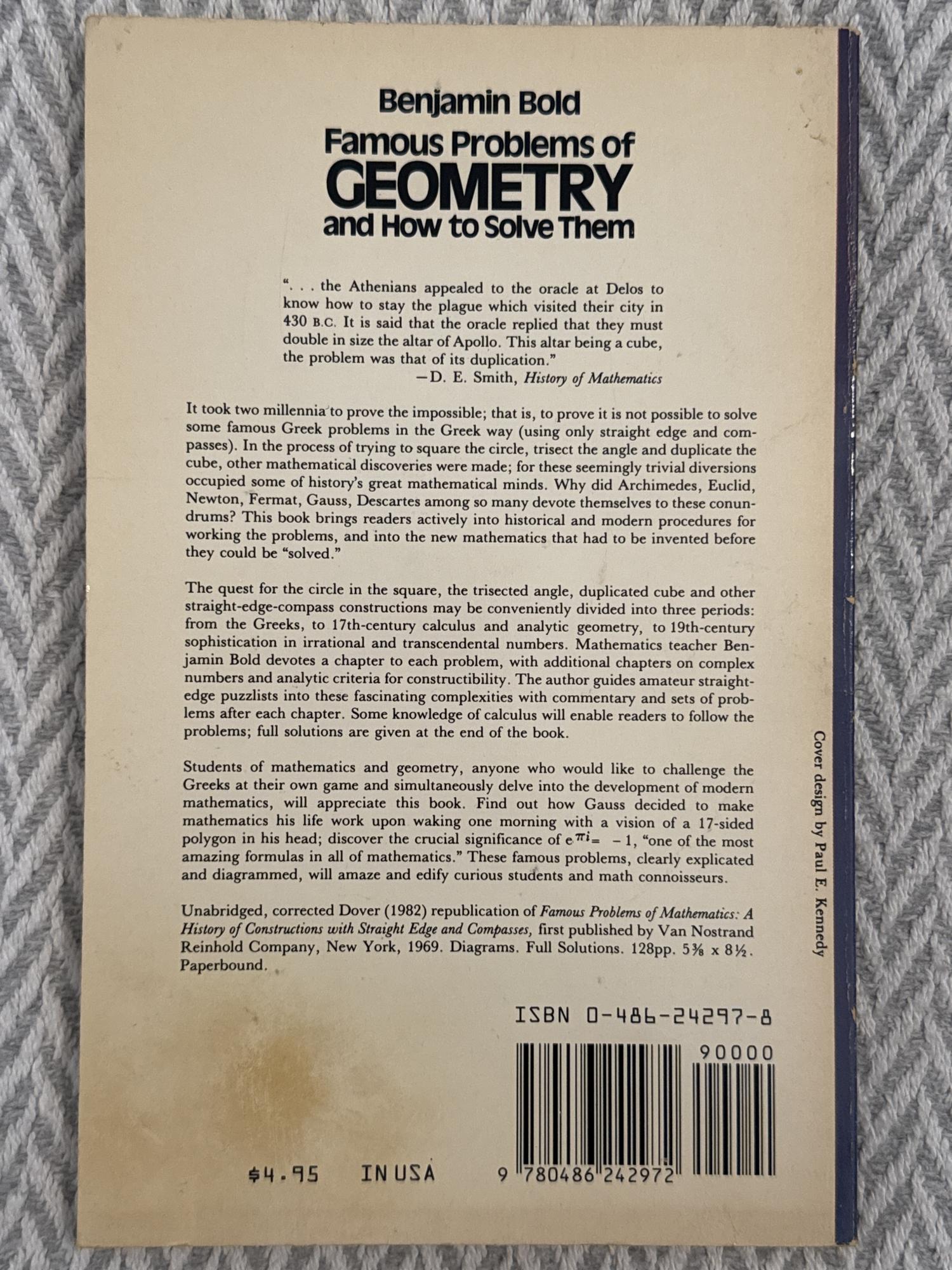 Este libro aborda algunos de los problemas más célebres de la geometría clásica, como la duplicación del cubo, la trisección del ángulo y la cuadratura del círculo. A través de explicaciones claras, muestra tanto los métodos históricos como las razones matemáticas por las que ciertos problemas son imposibles de resolver con herramientas tradicionales. Es una introducción accesible al razonamiento geométrico y a la historia de las matemáticas.