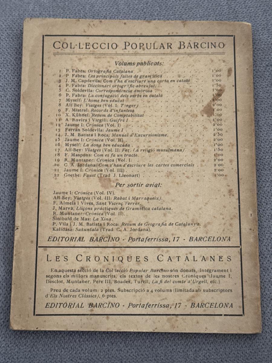 Barcino, 1927, Barcelona, Català, 16x12cm, 78p. Tapa tova il·lustrada i tacada. Amb senyals d'ús.