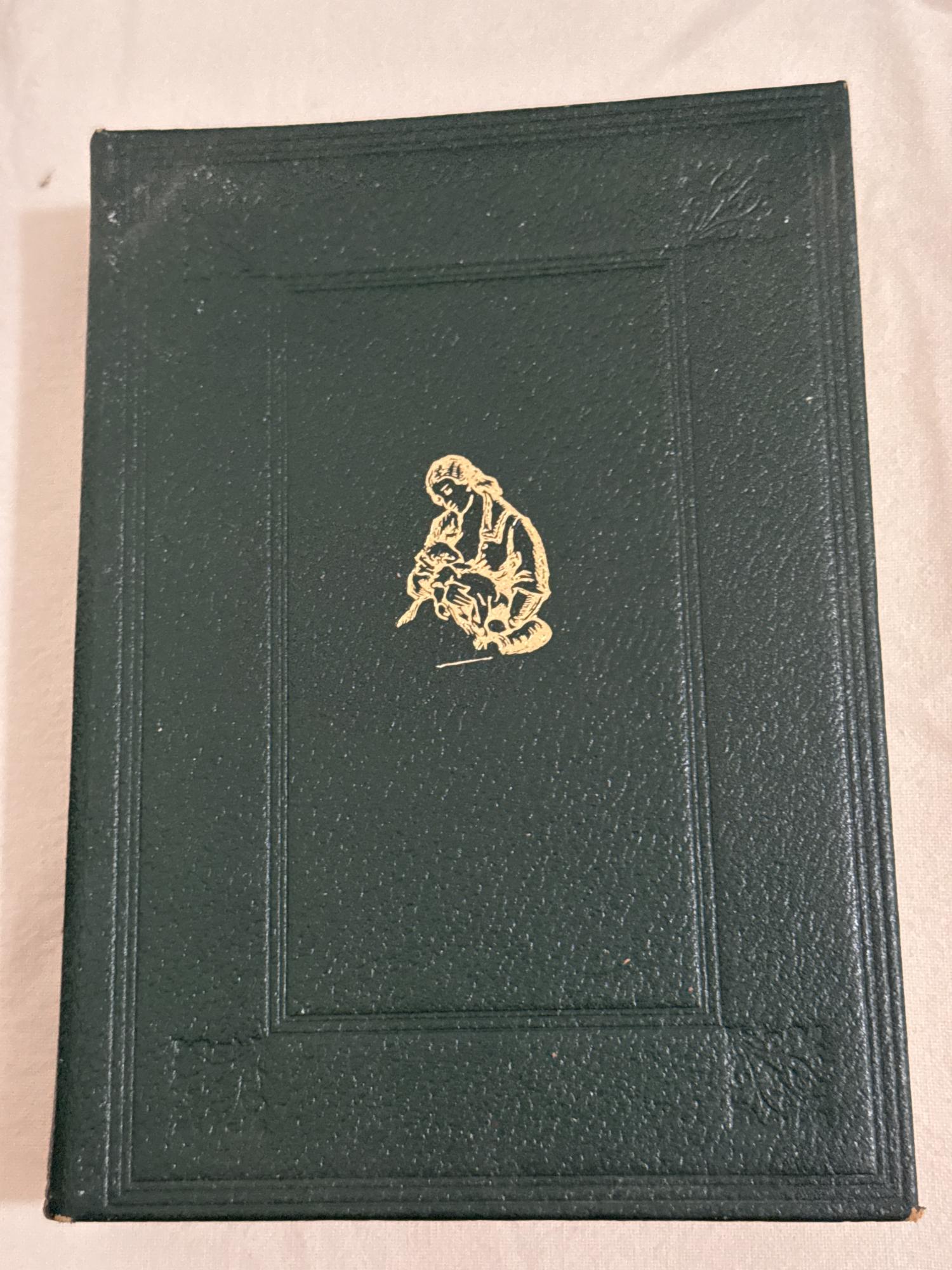 Tapa dura símil pell amb dibuix i lletres gravades en daurat
