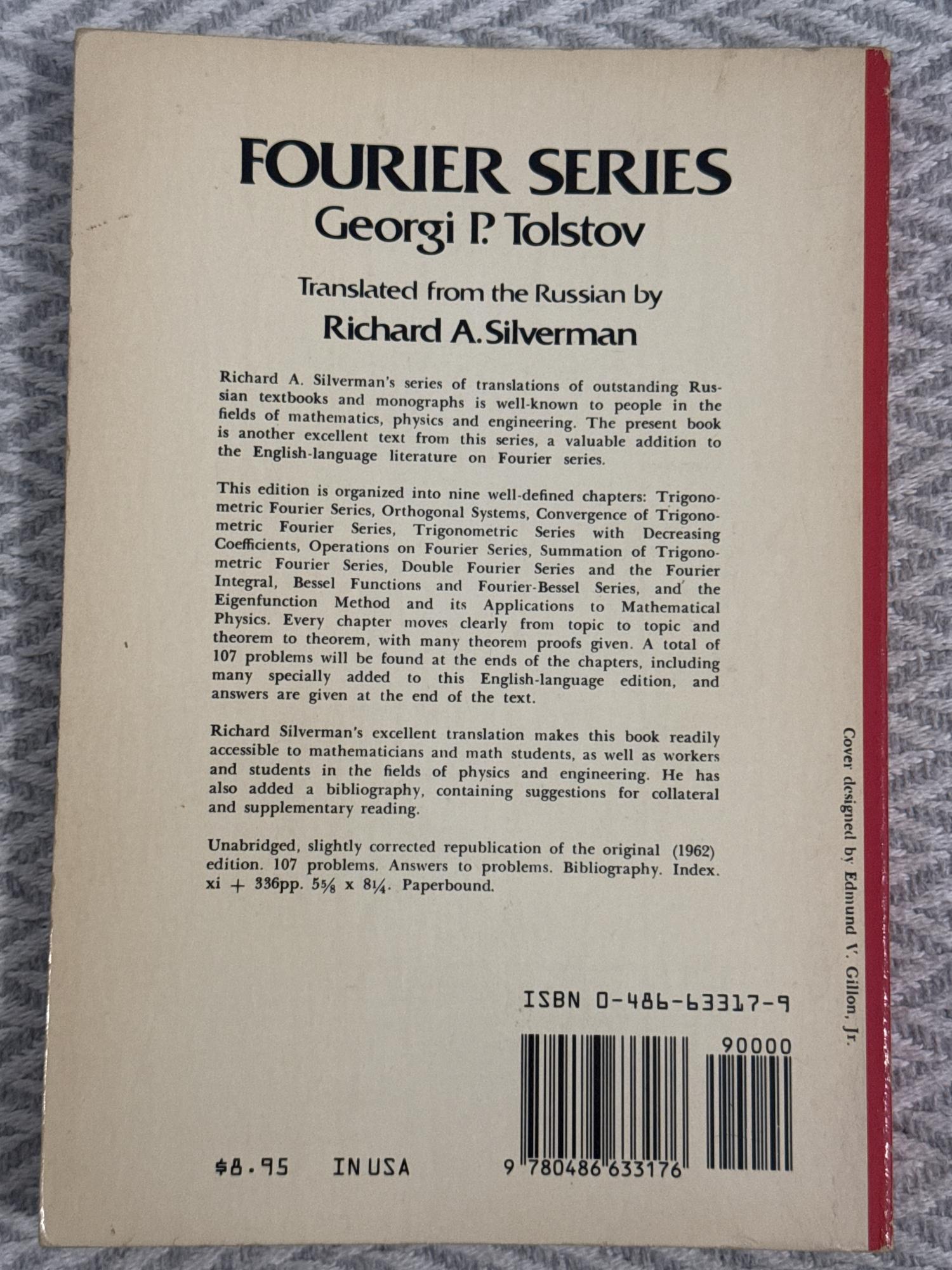 El libro desarrolla la teoría de las series de Fourier, incluyendo su convergencia, propiedades y aplicaciones al análisis de funciones periódicas. Presenta métodos matemáticos rigurosos con numerosos ejemplos ilustrativos. Es una obra orientada a estudiantes avanzados de análisis matemático.